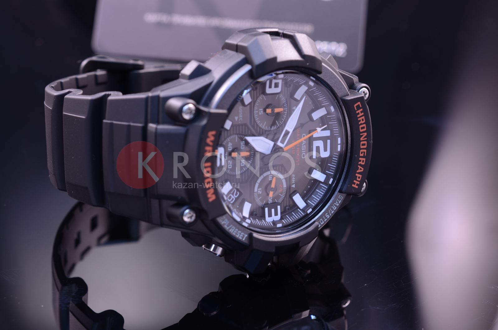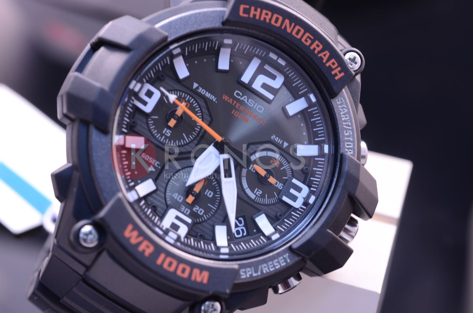 В часах имеется хронограф. Корпус и браслет черного цвета выполнены из высококачественных полимерных материалов. На дисплее отображается текущая дата. Изделие надежно защищено выпуклым акриловым стеклом. Высокая точность информации - прошедшее время отображается с точностью до доли секунды. Информация на дисплее четко видна даже в темное время суток благодаря неоновому покрытию. Высокая водонепроницаемость, которая составляет 10 Бар.