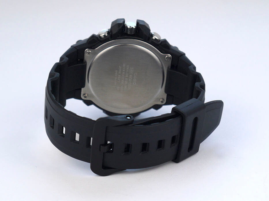 В часах имеется хронограф. Корпус и браслет черного цвета выполнены из высококачественных полимерных материалов. На дисплее отображается текущая дата. Изделие надежно защищено выпуклым акриловым стеклом. Высокая точность информации - прошедшее время отображается с точностью до доли секунды. Информация на дисплее четко видна даже в темное время суток благодаря неоновому покрытию. Высокая водонепроницаемость, которая составляет 10 Бар.