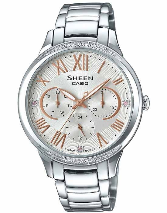 Напоминаем, что коллекция Casio Sheen - это линейка ультра-стильных женских фешн-часов в стальном корпусе, способных украсить собой самое изысканное и утонченное женское запястье. Особенностью коллекции, сделавшей ее популярной во всем мире, является использование знаменитых кристаллов Swarovski® в отделке циферблата каждой модели Sheen.