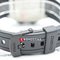 Питание электронная модель получает от батарейки, которая характеризуется 10-летним сроком службы. Знаменитый 8-угольный корпус в чёрном цвете выполнен из прочного пластика, поглощающего воздействие вибраций при ударе. Возможна идеальная читаемость показателей с циферблата благодаря светодиодной подсветкеСветодиодная подсветкаСветодиодная или LED-подсветка обеспечивает появление яркого холодного свечения за счёт LED-элементов - маленьких лампочек. Они потребляют минимальное количество энергии, чаще всего можно встретить 1 светодиод, в нижней части циферблата.. Гибкий ремешок из полимерного материала надёжно обхватывает запястье. Водонепроницаемость до 100 метров. Минеральное стекло. Будильник, секундомер. Габариты: 44,2 x 36,8 x 13,4 мм.