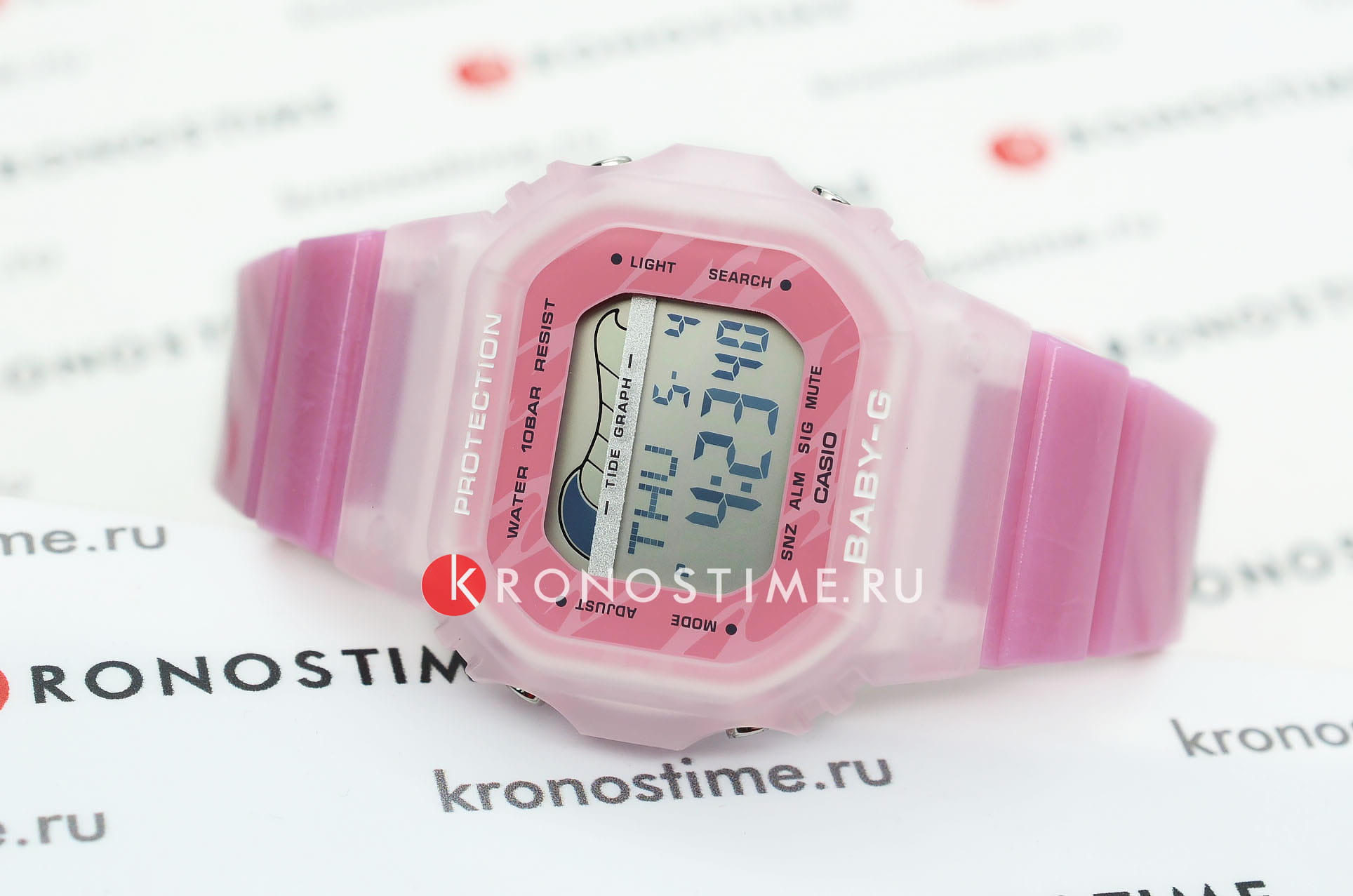 Женские японские часы-хронографХронографФункция позволяет измерять отрезки времени с особой точностью: часы, минуты, секунды. Верным признаком хронографа является наличие на циферблате 3 дополнительных окошек-счётчиков. Casio Baby-G BLX-565S-4E, кварцевый механизм с высокой точностью. Класс водозащиты: 100 метров, позволит плавать, нырять и заниматься другими водными видами спорта. Корпус часов изготовлен из пластика розового цвета. Ударопрочный корпусУдаропрочный корпусМеханизм заключён в корпус, выполненный из современных материалов, устойчивых к ударам, механическим повреждениям и падению с высоты: инновационный пластик, карбон, нержавеющая сталь, титан. защищает механизм от ударов и вибрации. Светодиодная подсветкаСветодиодная подсветкаСветодиодная или LED-подсветка обеспечивает появление яркого холодного свечения за счёт LED-элементов - маленьких лампочек. Они потребляют минимальное количество энергии, чаще всего можно встретить 1 светодиод, в нижней части циферблата. освещает весь циферблат, после отпускания кнопки свечение продолжается еще некоторое время. Особенность модели в функциях будильникаБудильникБуди́льник — часы, в заданный момент времени подающие звуковой, световой и/или в редких случаях другой сигнал., секундомераСекундомерСекундоме́р — прибор, способный измерять интервалы времени с точностью до долей секунды., таймераТаймерОтсчитывает секунды в обратном направлении в заданном интервале времени. и мирового времениМировое время Полезное часовое усложнение, отображающее время в основных городах и известных областях по всему миру, оно связано с часовыми поясами, удобно для путешественников и бизнесменов. . Циферблат подсвечивается ярким светодиодомСветодиодная подсветкаСветодиодная или LED-подсветка обеспечивает появление яркого холодного свечения за счёт LED-элементов - маленьких лампочек. Они потребляют минимальное количество энергии, чаще всего можно встретить 1 светодиод, в нижней части циферблата.. Послесвечение. Цвет подсветки: белый. Отображение возраста и фазы Луны. Отображение сведений о приливах и отливах на заданную дату и время. 12-ти и 24-х часовой формат времени. Функции включения/отключения летнего времени и включения/отключения звука. Батарея рассчитана на 3 года. Задняя крышка крепится на 4-х винтах.