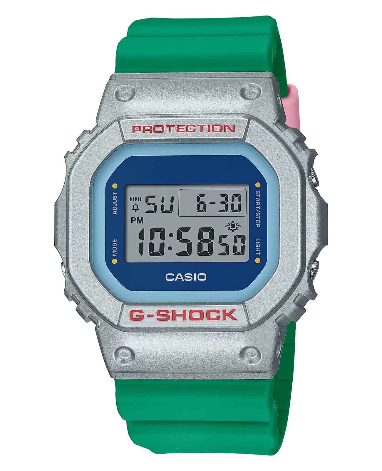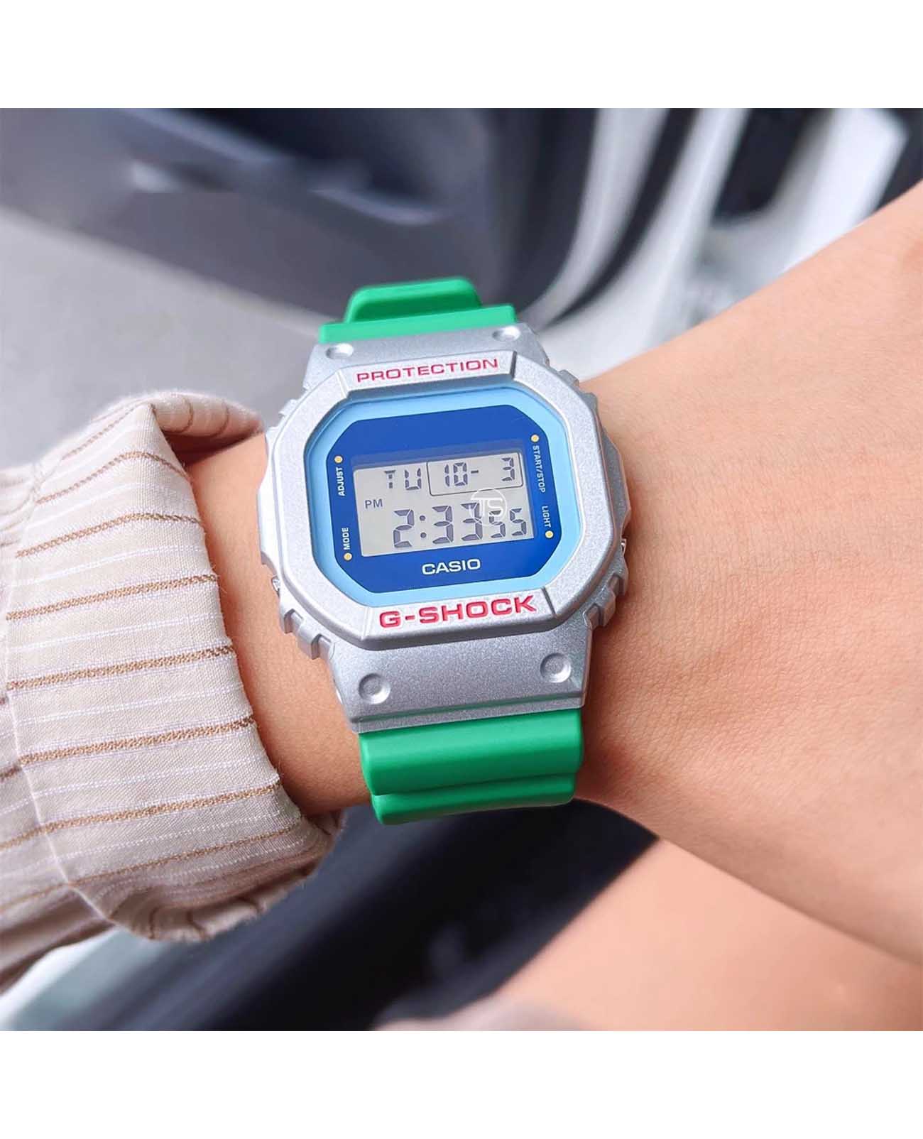 Стильные часы Casio G-Shock DW-5600EU-8A3, идеально подходят для тех, кто предпочитает спортивный стиль, но при этом остается в тренде. Ударопрочный корпусУдаропрочный корпусМеханизм заключён в корпус, выполненный из современных материалов, устойчивых к ударам, механическим повреждениям и падению с высоты: инновационный пластик, карбон, нержавеющая сталь, титан. защищает механизм от ударов и вибрации. Циферблат подсвечивается светодиодомСветодиодная подсветкаСветодиодная или LED-подсветка обеспечивает появление яркого холодного свечения за счёт LED-элементов - маленьких лампочек. Они потребляют минимальное количество энергии, чаще всего можно встретить 1 светодиод, в нижней части циферблата.. Послесвечение. Цвет подсветки: белый. Световая индикация сигнала. Типы сигналов: ежедневный, ежемесячный, каждый день определенного месяца, на определенную дату. 12-ти и 24-х часовой формат времени. СекундомерСекундомерСекундоме́р — прибор, способный измерять интервалы времени с точностью до долей секунды. с двумя точностями показаний: 1/100с (до 1ч) и 1с (после 1ч) и временем измерения 24ч. Сплит-хронографСплит-хронографИспользуется для измерения продолжительности нескольких временных отрезков, начинающихся одновременно, а заканчивающихся в разное время.. ТаймерТаймерОтсчитывает секунды в обратном направлении в заданном интервале времени. обратного отсчета от 1с до 24ч с автоповтором. Батарейка рассчитана на 5 лет. БудильникБудильникБуди́льник — часы, в заданный момент времени подающие звуковой, световой и/или в редких случаях другой сигнал., ежечасный сигнал. Стальная задняя крышка крепится на 4-х винтах. Ремешок из полимерного материала на стандартной застежке.