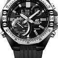 Мужские часы-хронографХронографФункция позволяет измерять отрезки времени с особой точностью: часы, минуты, секунды. Верным признаком хронографа является наличие на циферблате 3 дополнительных окошек-счётчиков.  Casio Edifice ECB-10TP-1A, кварцевый механизм с высокой точностью. Минеральное стеклоМинеральное стеклоМинеральное стекло представляет собой искусственно выращенный минерал кварца. Такое стекло отличается особой устойчивостью к повреждениям и царапинам. Уступает по некоторым качествам сапфировому стеклу. устойчивое к появлению царапин, обладающее высокой прозрачностью. СекундомерСекундомерСекундоме́р — прибор, способный измерять интервалы времени с точностью до долей секунды. с точностью показаний 1/10с и временем измерения 1ч. Корпус изготовлен из нержавеющей стали с IP-покрытиемIP-покрытиеМетод ионного напыления. Демонстрирует повышенную устойчивость к истиранию, окислению и химическим веществам. Под воздействием высокого давления и температуры около 1500°C молекулы металла надёжно соединяются с частицами корпуса часов.. Ушки часов разработаны по схеме четырехрычажной подвески гоночного автомобиля. Двойная светодиодная подсветка Super Illuminator с функцией Afterglow (для подсветки не нужно удерживать кнопку, время послесвечения настраивается 1,5 или 3 сек): одновременно подсвечивается аналоговый циферблат и цифровой дисплей. Необритовое покрытиеПодсветка NeobriteИспользование светонакопительных составов на основе сульфида цинка или алюмината стронция, яркий свет можно наблюдать на протяжении 6-10 часов после «зарядки» часов около источника света. обеспечивает длительное послесвечение в темноте даже после кратковременного нахождения на свету. Мировое времяМировое время Полезное часовое усложнение, отображающее время в основных городах и известных областях по всему миру, оно связано с часовыми поясами, удобно для путешественников и бизнесменов. – 38 городов, всемирное координированное время UTCUTCВсемирное кординационное время, не имеющее привязки к географическому положению Гринвича, основывается на атомном отсчёте времени. Регулировка времени осуществляется более точно, чем устаревшее GMT.
