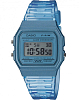 Винтажная модель наделена узнаваемым элементом – квадратным полимерным корпусом. Он символизирует уважение к начальным успехам Casio, отражает винтажный стиль. Стильно смотрится полупрозрачное исполнение синего ремешка, пластиковый материал отличается лёгкостью и обеспечивает комфортное ношение на запястье. Акриловое стекло устойчиво к повреждениям, при возникновении царапин их легко можно устранить с помощью полировки. Японский кварцевый механизм работает от батарейки, характеризующейся 7-летним сроком службы. Циферблат освещается с боковой стороны светодиодной микроподсветкойСветодиодная подсветкаСветодиодная или LED-подсветка обеспечивает появление яркого холодного свечения за счёт LED-элементов - маленьких лампочек. Они потребляют минимальное количество энергии, чаще всего можно встретить 1 светодиод, в нижней части циферблата.. Аксессуар имеет базовый функционал: автоматический календарь, будильник, секундомер. Габариты: 38,2 x 33,2 x 8,5 мм.