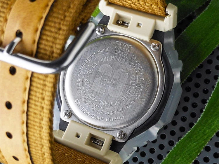 Японские мужские часы противоударные с карбоновым корпусом Casio G-Shock GA-2100HUF-5A, электронный механизм с высокой точностью. Класс водозащиты: 200 метров, позволит плавать, нырять и заниматься другими водными видами спорта. Корпус часов изготовлен из карбона, прозрачного цвета.
