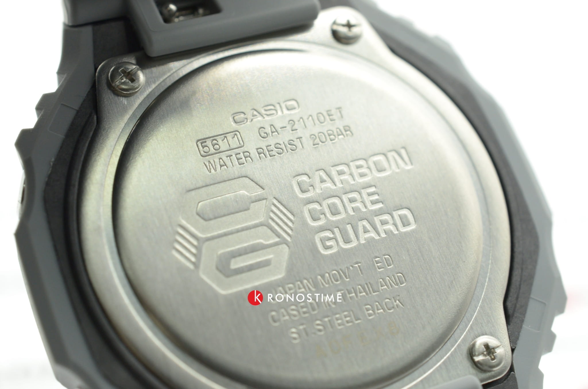Японские мужские часы-хронографХронографФункция позволяет измерять отрезки времени с особой точностью: часы, минуты, секунды. Верным признаком хронографа является наличие на циферблате 3 дополнительных окошек-счётчиков. Casio G-Shock GA-2110ET-8A из коллекции G-Shock. Противоударный пластиковый корпус с карбоновыми волокнами более прочный и, в то же время, более легкий. Минеральное стеклоМинеральное стеклоМинеральное стекло представляет собой искусственно выращенный минерал кварца. Такое стекло отличается особой устойчивостью к повреждениям и царапинам. Уступает по некоторым качествам сапфировому стеклу. устойчивое к появлению царапин, обладающее высокой прозрачностью. Ударопрочный корпусУдаропрочный корпусМеханизм заключён в корпус, выполненный из современных материалов, устойчивых к ударам, механическим повреждениям и падению с высоты: инновационный пластик, карбон, нержавеющая сталь, титан. защищает механизм от ударов и вибрации. Светодиодная подсветкаСветодиодная подсветкаСветодиодная или LED-подсветка обеспечивает появление яркого холодного свечения за счёт LED-элементов - маленьких лампочек. Они потребляют минимальное количество энергии, чаще всего можно встретить 1 светодиод, в нижней части циферблата. освещает весь циферблат. Мировое времяМировое время Полезное часовое усложнение, отображающее время в основных городах и известных областях по всему миру, оно связано с часовыми поясами, удобно для путешественников и бизнесменов. – 48 городов (29 часовых поясов). СекундомерСекундомерСекундоме́р — прибор, способный измерять интервалы времени с точностью до долей секунды. с точностью измерения 1/100 секунды и измерением до 23 часов 59 минут 59,99 cек. ТаймерТаймерОтсчитывает секунды в обратном направлении в заданном интервале времени. обратного отсчета (диапазон времени 24 часа), автоматический календарь, 12/24 отображение времени. 5 будильниковБудильникБуди́льник — часы, в заданный момент времени подающие звуковой, световой и/или в редких случаях другой сигнал., один с функцией Snooze, ежечасный сигнал. Класс водозащиты: 200 метров, позволит плавать, нырять и заниматься другими водными видами спорта. Ремешок из полимерного материала на стандартной застежке.