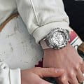 Японские мужские часы-хронографХронографФункция позволяет измерять отрезки времени с особой точностью: часы, минуты, секунды. Верным признаком хронографа является наличие на циферблате 3 дополнительных окошек-счётчиков. Casio G-Shock GM-110SCM-1A из коллекции G-Shock. Противоударный пластиковый корпус с карбоновыми волокнами более прочный и, в то же время, более легкий.  Минеральное стеклоМинеральное стеклоМинеральное стекло представляет собой искусственно выращенный минерал кварца. Такое стекло отличается особой устойчивостью к повреждениям и царапинам. Уступает по некоторым качествам сапфировому стеклу. устойчивое к появлению царапин, обладающее высокой прозрачностью. Ударопрочный корпусУдаропрочный корпусМеханизм заключён в корпус, выполненный из современных материалов, устойчивых к ударам, механическим повреждениям и падению с высоты: инновационный пластик, карбон, нержавеющая сталь, титан. защищает механизм от ударов и вибрации. Светодиодная подсветкаСветодиодная подсветкаСветодиодная или LED-подсветка обеспечивает появление яркого холодного свечения за счёт LED-элементов - маленьких лампочек. Они потребляют минимальное количество энергии, чаще всего можно встретить 1 светодиод, в нижней части циферблата. освещает весь циферблат. Мировое времяМировое время Полезное часовое усложнение, отображающее время в основных городах и известных областях по всему миру, оно связано с часовыми поясами, удобно для путешественников и бизнесменов. – 48 городов (29 часовых поясов). СекундомерСекундомерСекундоме́р — прибор, способный измерять интервалы времени с точностью до долей секунды. с точностью измерения 1/100 секунды и измерением до 23 часов 59 минут 59,99 cек. ТаймерТаймерОтсчитывает секунды в обратном направлении в заданном интервале времени. обратного отсчета (диапазон времени 24 часа), автоматический календарь, 12/24 отображение времени. 5 будильниковБудильникБуди́льник — часы, в заданный момент времени подающие звуковой, световой и/или в редких случаях другой сигнал., один с функцией Snooze, ежечасный сигнал.  Класс водозащиты: 200 метров, позволит плавать, нырять и заниматься другими водными видами спорта. Ремешок из полимерного материала на стандартной застежке.