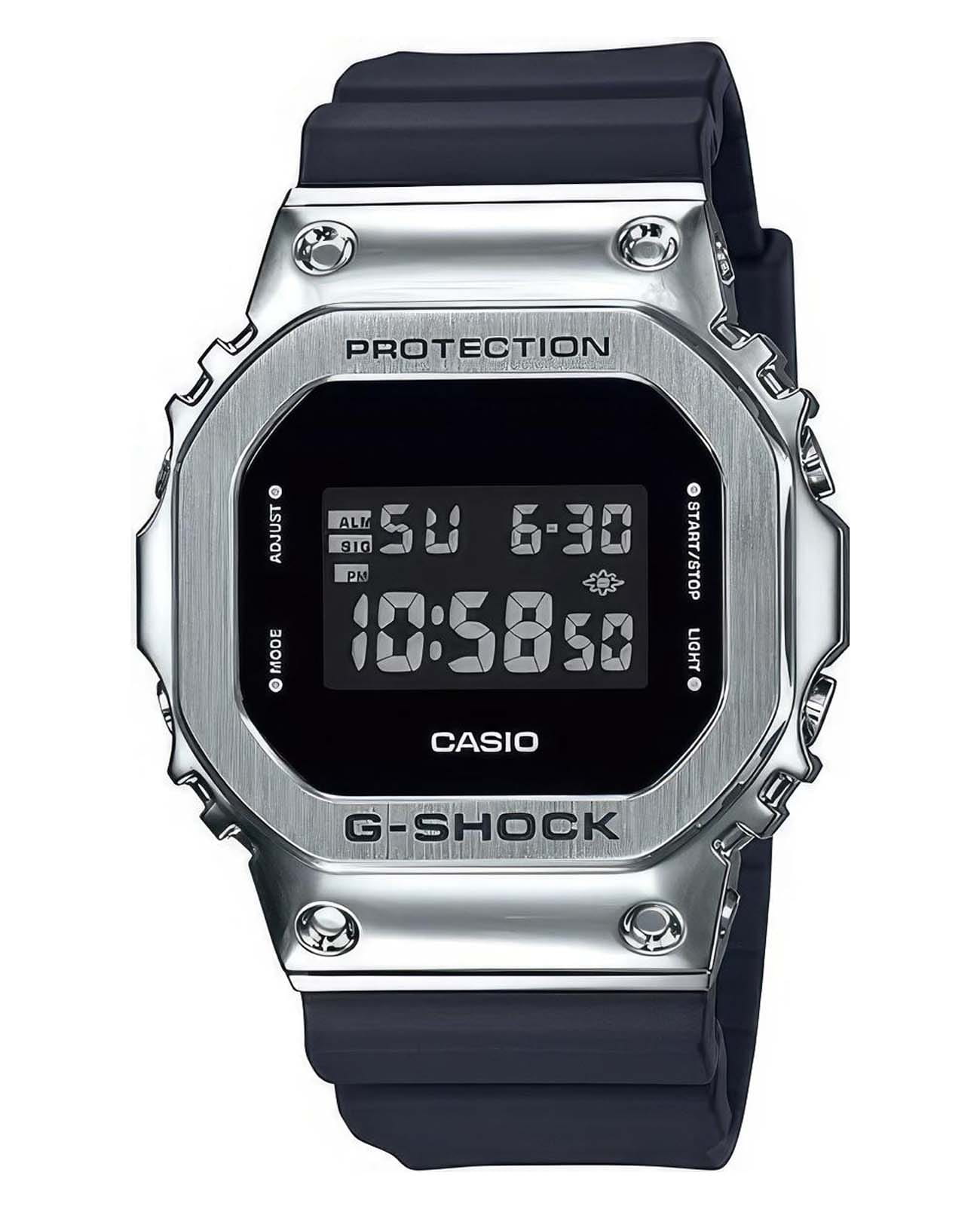 Японские ударопрочныеУдаропрочный корпусМеханизм заключён в корпус, выполненный из современных материалов, устойчивых к ударам, механическим повреждениям и падению с высоты: инновационный пластик, карбон, нержавеющая сталь, титан. мужские часы-хронографХронографФункция позволяет измерять отрезки времени с особой точностью: часы, минуты, секунды. Верным признаком хронографа является наличие на циферблате 3 дополнительных окошек-счётчиков. Casio G-Shock GM-5600U-1DR в стальном корпусе. Минеральное стеклоМинеральное стеклоМинеральное стекло представляет собой искусственно выращенный минерал кварца. Такое стекло отличается особой устойчивостью к повреждениям и царапинам. Уступает по некоторым качествам сапфировому стеклу. устойчивое к появлению царапин, обладающее высокой прозрачностью. Ударопрочный корпусУдаропрочный корпусМеханизм заключён в корпус, выполненный из современных материалов, устойчивых к ударам, механическим повреждениям и падению с высоты: инновационный пластик, карбон, нержавеющая сталь, титан. защищает механизм от ударов и вибрации. Электролюминесцентная подсветкаЭлектролюминесцентная подсветкаЭлектролюминесцентная панель устанавливается под ЖК-экраном часов, при нажатии кнопки электричество преобразуется в свет за счёт подачи напряжения на атомы фосфора, такой тип подсветки позволяет освещать весь циферблат. освещает весь циферблат. Включение/выключение звукового сигнала нажатия кнопки. 12/24-часовой формат времени. Мировое время Мировое время Полезное часовое усложнение, отображающее время в основных городах и известных областях по всему миру, оно связано с часовыми поясами, удобно для путешественников и бизнесменов. 31 часовой пояс (48 городов + всемирное координированное время), переход на летнее время вкл./выкл. СекундомерСекундомерСекундоме́р — прибор, способный измерять интервалы времени с точностью до долей секунды.. ТаймерТаймерОтсчитывает секунды в обратном направлении в заданном интервале времени.. 5 ежедневных будильниковБудильникБуди́льник — часы, в заданный момент времени подающие звуковой, световой и/или в редких случаях другой сигнал.. Почасовой сигнал времени. Класс водозащиты: 200 метров, позволит плавать, нырять и заниматься другими водными видами спорта. Ремешок из полимерного материала на стандартной застежке.