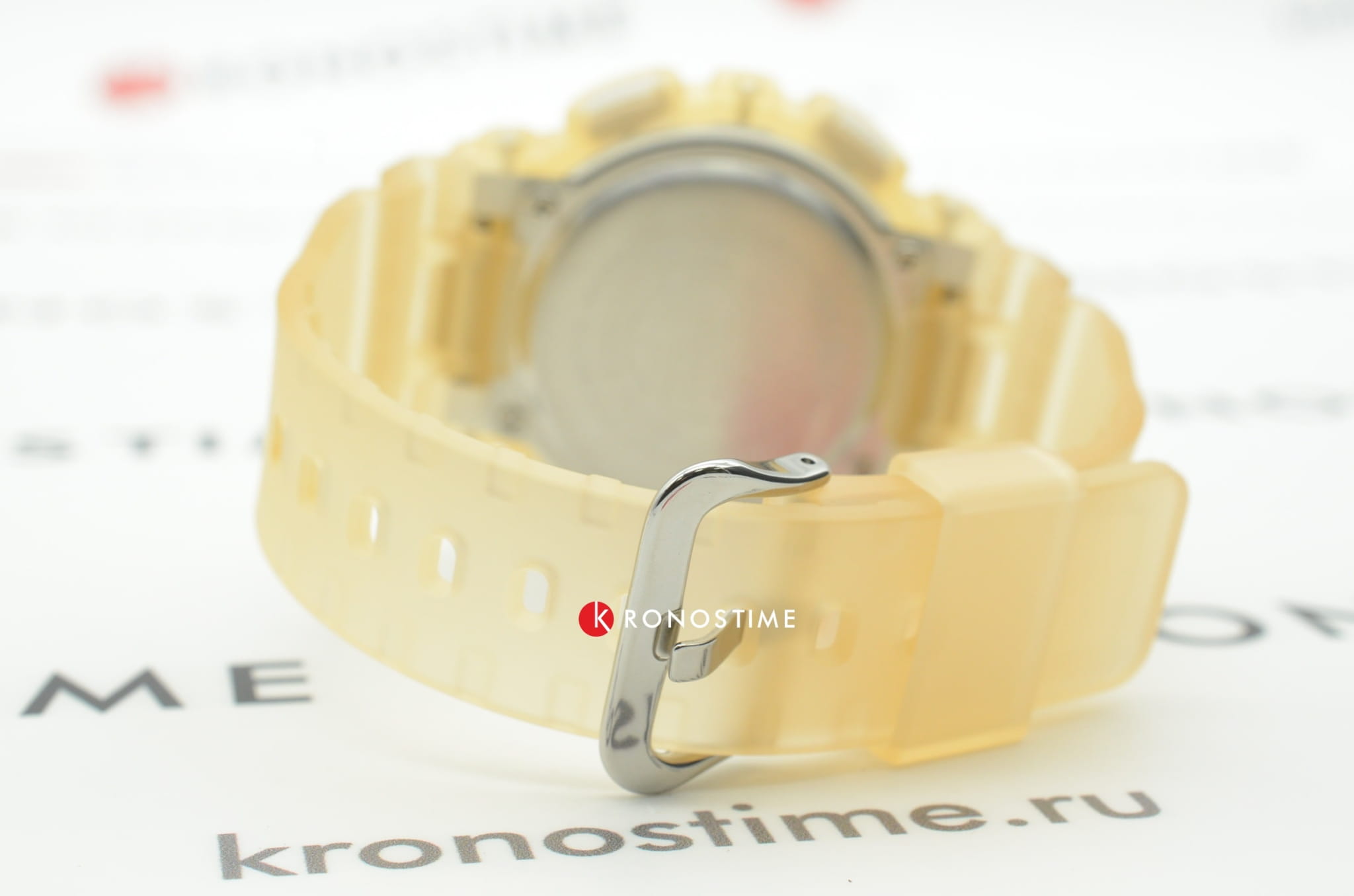 Компактный аксессуар имеет дизайн в скелетонизорованном формате. Полимерный корпус и ремешок бежевого цвета изготовлены в полупрозрачном исполнении. Циферблат с минеральным стеклом наделён винтажными элементами: окошки и стрелки оформлены в духе музыкальных проигрывателей эпохи 90-х. Модель обладает противоударным корпусомУдаропрочный корпусМеханизм заключён в корпус, выполненный из современных материалов, устойчивых к ударам, механическим повреждениям и падению с высоты: инновационный пластик, карбон, нержавеющая сталь, титан., выдерживающим удары, вибрации, падение с высоты. Наручные часы станут идеальным вариантом для девушки, придерживающейся активного образа жизни. Японский кварцевый калибр характеризуется точностью хода +/- 15 секунд в месяц. Он работает от батарейки с 2-летним сроком службы. Часы подходят для плавания и ныряния, так как сохраняют водонепроницаемость при давлении до 20 бар. Циферблат подсвечивается LED-диодом Светодиодная подсветкаСветодиодная или LED-подсветка обеспечивает появление яркого холодного свечения за счёт LED-элементов - маленьких лампочек. Они потребляют минимальное количество энергии, чаще всего можно встретить 1 светодиод, в нижней части циферблата., функция автоподсветки активируется при поднесении часов к лицу. Функции: секундомер с точностью в 1/1000 секунды, хронографХронографФункция позволяет измерять отрезки времени с особой точностью: часы, минуты, секунды. Верным признаком хронографа является наличие на циферблате 3 дополнительных окошек-счётчиков., будильник, мировое времяМировое время Полезное часовое усложнение, отображающее время в основных городах и известных областях по всему миру, оно связано с часовыми поясами, удобно для путешественников и бизнесменов. – 48 городов, календарь, таймер, индикация средней скорости пройденного маршрута. Габариты: 49 x 45,9 x 15,8 мм.