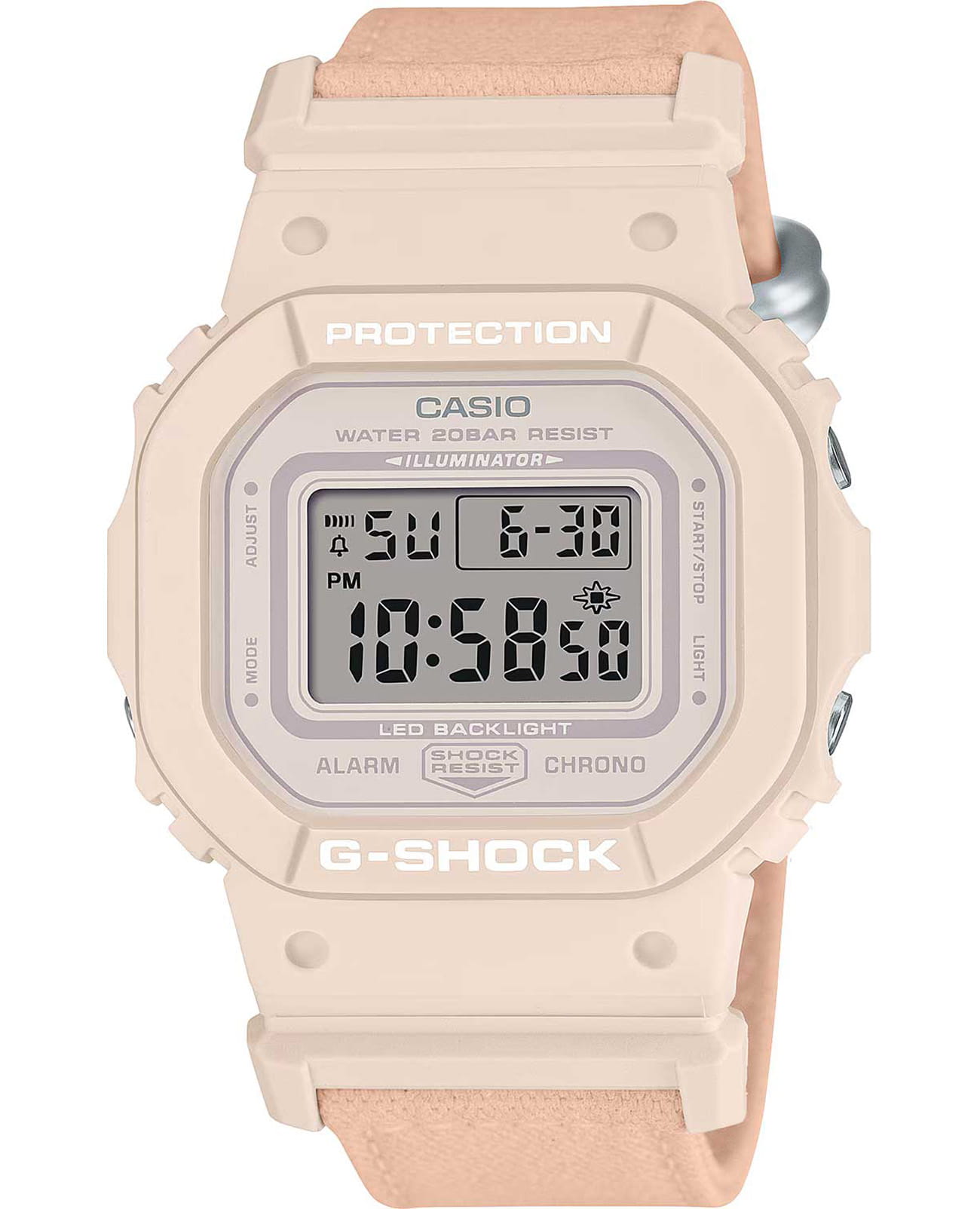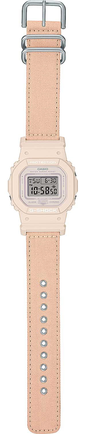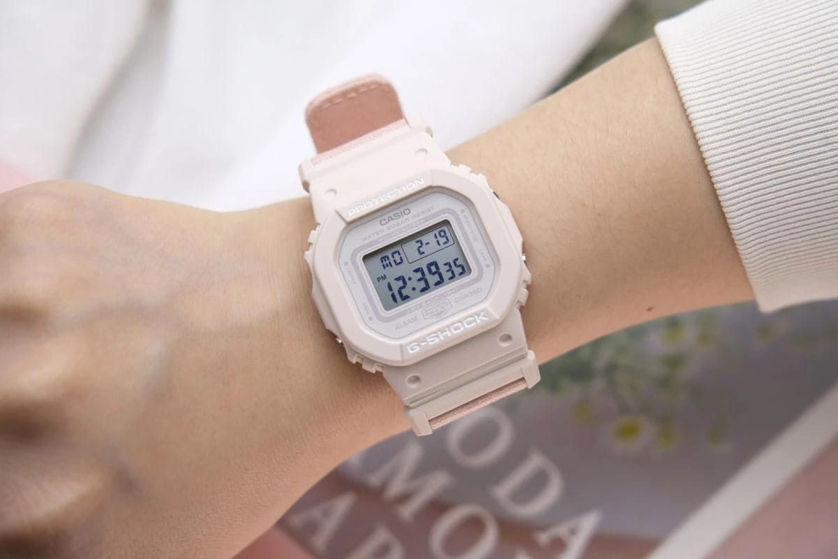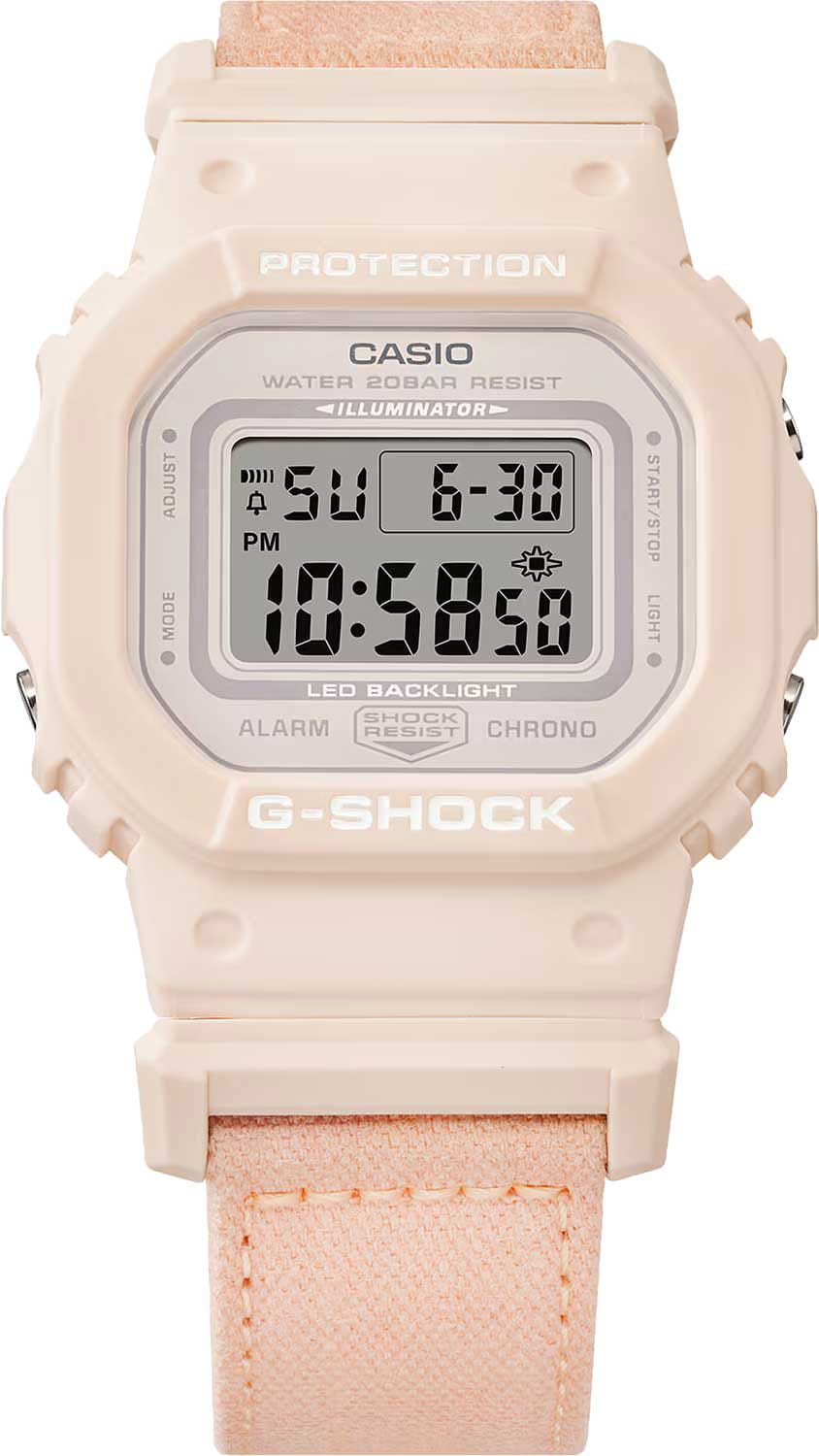 Японские женские часы-хронографХронографФункция позволяет измерять отрезки времени с особой точностью: часы, минуты, секунды. Верным признаком хронографа является наличие на циферблате 3 дополнительных окошек-счётчиков. Casio G-Shock GMD-S5600CT-4DR (GMD-S5600CT-4). Смелые и красивые, в потрясающем цвете. Минеральное стеклоМинеральное стеклоМинеральное стекло представляет собой искусственно выращенный минерал кварца. Такое стекло отличается особой устойчивостью к повреждениям и царапинам. Уступает по некоторым качествам сапфировому стеклу. устойчивое к появлению царапин, обладающее высокой прозрачностью. Ударопрочный корпусУдаропрочный корпусМеханизм заключён в корпус, выполненный из современных материалов, устойчивых к ударам, механическим повреждениям и падению с высоты: инновационный пластик, карбон, нержавеющая сталь, титан. защищает механизм от ударов и вибрации. Светодиодная подсветкаСветодиодная подсветкаСветодиодная или LED-подсветка обеспечивает появление яркого холодного свечения за счёт LED-элементов - маленьких лампочек. Они потребляют минимальное количество энергии, чаще всего можно встретить 1 светодиод, в нижней части циферблата. освещает весь циферблат, после отпускания кнопки свечение продолжается еще некоторое время. Настраиваемое послесвечение 1,5 или 3сек. СекундомерСекундомерСекундоме́р — прибор, способный измерять интервалы времени с точностью до долей секунды.. ТаймерТаймерОтсчитывает секунды в обратном направлении в заданном интервале времени.. 5 ежедневных будильников. Почасовой сигнал времени. Вечный календарьВечный календарьКлассическое часовое усложнение, представляющее собой календарь, рассчитанный на несколько лет вперёд (стандартно – до 2099 года). Определяет текущую дату, день недели, месяц.. Класс водозащиты: 200 метров, позволит плавать, нырять и заниматься другими водными видами спорта. Тканевый ремешок TrueCotton.