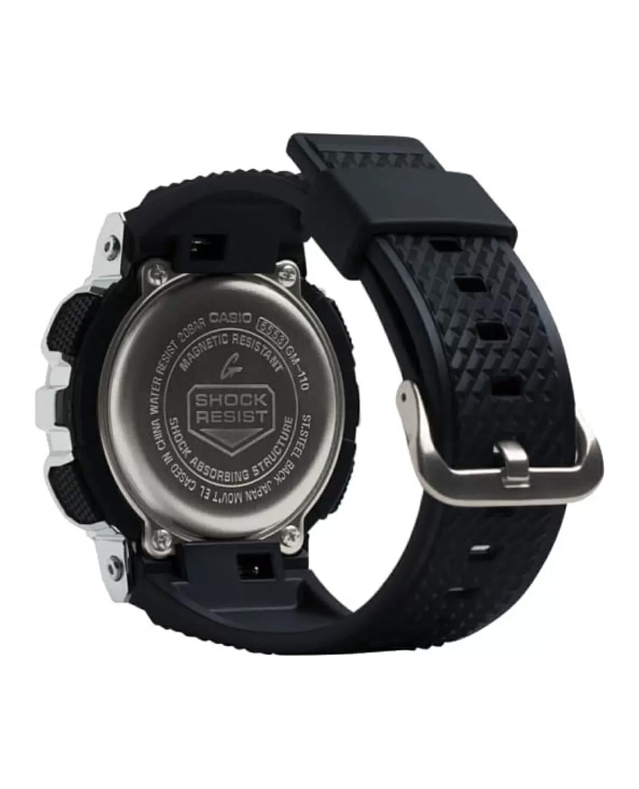Японские часы-хронографХронографФункция позволяет измерять отрезки времени с особой точностью: часы, минуты, секунды. Верным признаком хронографа является наличие на циферблате 3 дополнительных окошек-счётчиков. Casio G-Shock GM-S110-1A из коллекции G-Shock. Минеральное стеклоМинеральное стеклоМинеральное стекло представляет собой искусственно выращенный минерал кварца. Такое стекло отличается особой устойчивостью к повреждениям и царапинам. Уступает по некоторым качествам сапфировому стеклу. устойчивое к появлению царапин, обладающее высокой прозрачностью. Ударопрочный корпусУдаропрочный корпусМеханизм заключён в корпус, выполненный из современных материалов, устойчивых к ударам, механическим повреждениям и падению с высоты: инновационный пластик, карбон, нержавеющая сталь, титан. защищает механизм от ударов и вибрации. Светодиодная автоподсветка NeobriteПодсветка NeobriteИспользование светонакопительных составов на основе сульфида цинка или алюмината стронция, яркий свет можно наблюдать на протяжении 6-10 часов после «зарядки» часов около источника света. - при повороте часов в сторону лица подсветка дисплея осуществляется автоматически. Настраиваемое послесвечение 1,5 или 3сек. Мировое времяМировое время Полезное часовое усложнение, отображающее время в основных городах и известных областях по всему миру, оно связано с часовыми поясами, удобно для путешественников и бизнесменов. – 48 городов (29 часовых поясов). СекундомерСекундомерСекундоме́р — прибор, способный измерять интервалы времени с точностью до долей секунды. с точностью измерения 1/100 секунды и измерением до 23 часов 59 минут 59,99 cек. ТаймерТаймерОтсчитывает секунды в обратном направлении в заданном интервале времени. обратного отсчета (диапазон времени 24 часа), автоматический календарь, 12/24 отображение времени. 5 будильниковБудильникБуди́льник — часы, в заданный момент времени подающие звуковой, световой и/или в редких случаях другой сигнал., ежечасный сигнал. Автоматический переход на зимнее и летнее время, возможность включения/отключения данной функции. Функция перемещения стрелок для беспрепятственного просмотра информации на цифровых дисплеях и отключения/включения звука. Батарейка рассчитана на 3 года. Класс водозащиты: 200 метров, позволит плавать, нырять и заниматься другими водными видами спорта. Ремешок из полимерного материала на стандартной застежке.