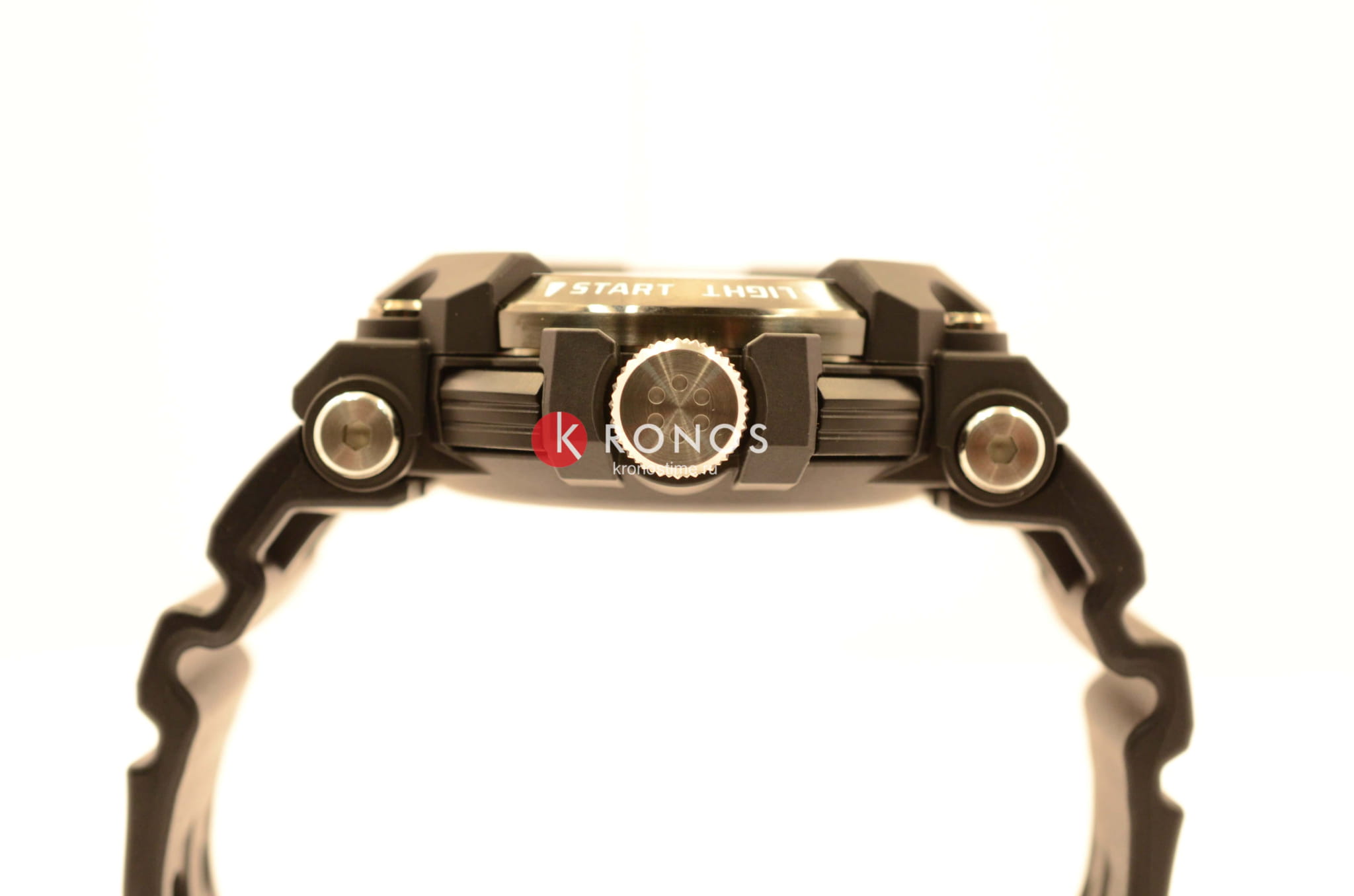 Карбоновый корпус и задняя поверхность часов представляют собой единую монолитную конструкцию. Выпуклое стекло часов спрессовано с металлическим кольцом, которое надежно крепится к корпусу шестью винтами, что обеспечивает высокую прочность часов и повышенную водостойкость. Также водостойкость обеспечивается тройными прокладками на стержнях кнопок.