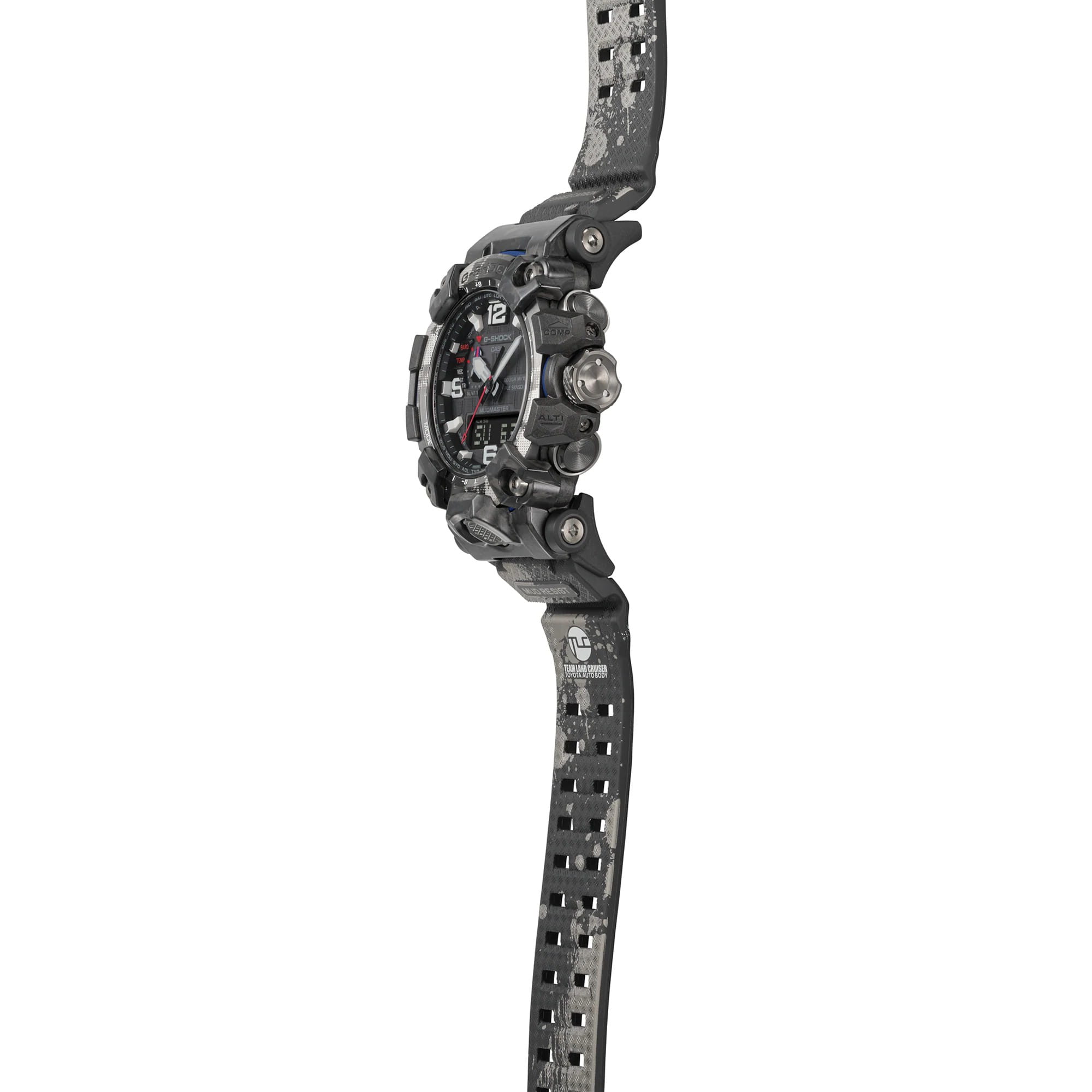 Японские мужские лимитированные наручные часы Casio G-SHOCK GWG-2000TLC-1AER с хронографом - это коллаборация бренда G-SHOCK и Team Land Cruiser Toyota Auto Body в виде флагманских сверх функциональных джишоков из серии MUDMASTER в обновленном корпусе . Часы Casio G-Shock Mudmaster GWG-2000TLC-1AER оснащены кварцевым механизмом с высокой точностью. Сапфировое стекло, обладающее высокой прозрачностью и устойчивое к появлению царапин. Класс водозащиты: 200 метров, позволит плавать, нырять и заниматься другими водными видами спорта. Карбоновая текстура корпуса является уникальной, благодаря чему рисунок на корпусе не повторяется ни в одной модели. Часы оснащены технологией абсолютной пыле- и грязеустройчивости и защитой от самых мощных вибраций. Питание от энергии света Tough SolarTough SolarТехнология основана на подзарядке аккумулятора от источника солнечного света, специальная панель улавливает солнечные лучи и преобразует их в энергию для работы часов. Достаточно пары минут нахождения на солнце для функционирования часов в течении суток. . Аксессуар станет универсальным помощником, ведь в вашем распоряжении появляется множество функций: цифровой компас, хронографХронографФункция позволяет измерять отрезки времени с особой точностью: часы, минуты, секунды. Верным признаком хронографа является наличие на циферблате 3 дополнительных окошек-счётчиков., будильник, барометр, высотомер, лунный календарь, термометр, Bluetooth-синхронизацияBluetoothСовременная технология, позволяющая синхронизировать часы с телефоном и переносить данные. Часы с Bluetooth расширяют возможности вашего смартфона и делают его использование ещё более удобным..