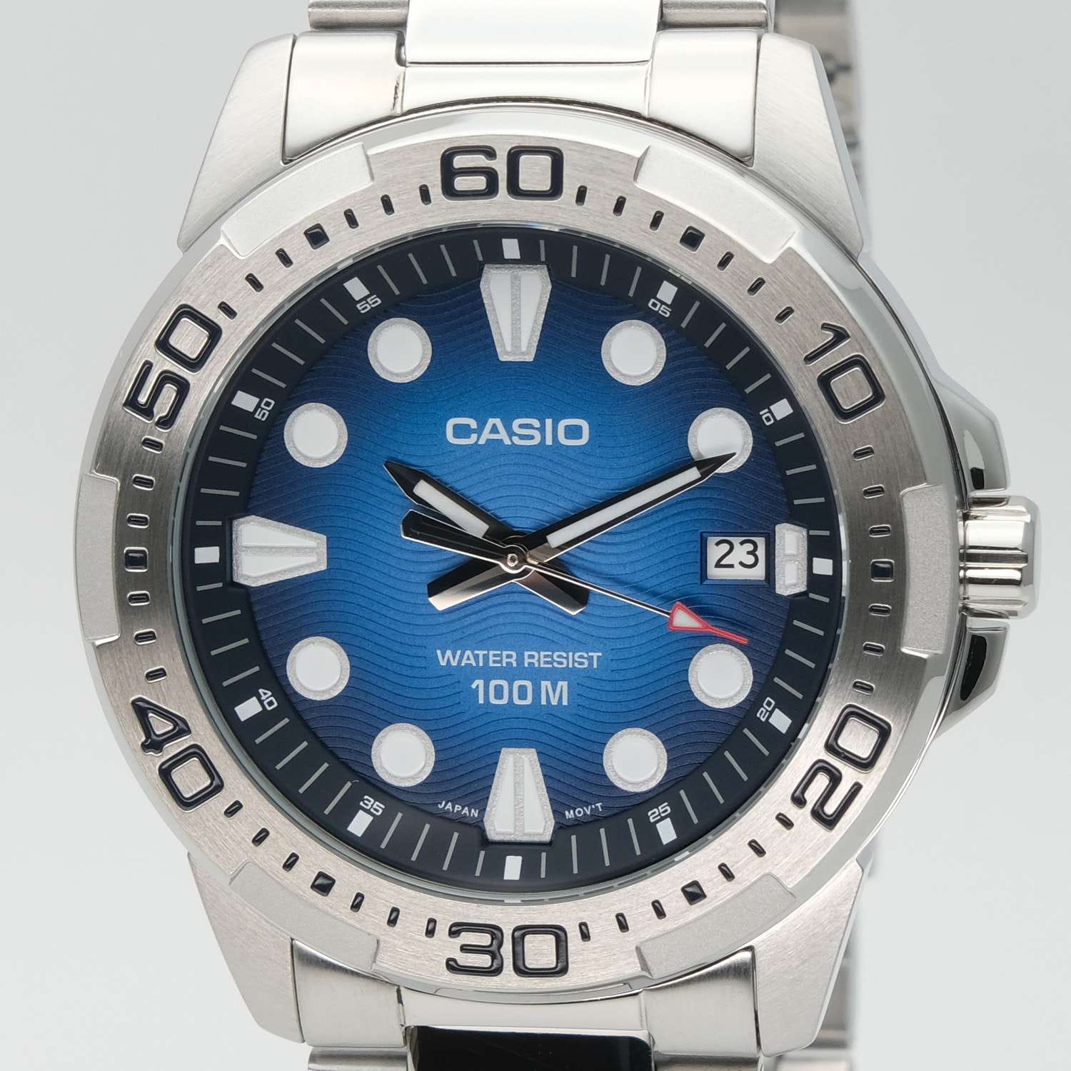 Мужские кварцевые часы Casio MTD-140D-2A — надёжный спортивный аксессуар с японской точностью. Круглый корпус размером 43,7 мм из нержавеющей стали, синий циферблат с точками и штрихами, окошко даты в положении 3 часов. Стекло — минеральноеМинеральное стеклоМинеральное стекло представляет собой искусственно выращенный минерал кварца. Такое стекло отличается особой устойчивостью к повреждениям и царапинам. Уступает по некоторым качествам сапфировому стеклу.. Механизм — кварцевый, точность хода ±20 секунд в месяц. Водонепроницаемость 100 м. Заводная головка с защитой. Браслет — стальной на раскладной застёжкеРаскладная застёжкаТакой тип застёжки используется только на браслетах из металла. Она никогда не раскрывается полностью, происходит разделение на 2 и более частей. Раскладывающая застёжка снизит вероятность потери часов к минимуму.. Идеальный выбор для тех, кто ценит японское качество и функциональный повседневный стиль.