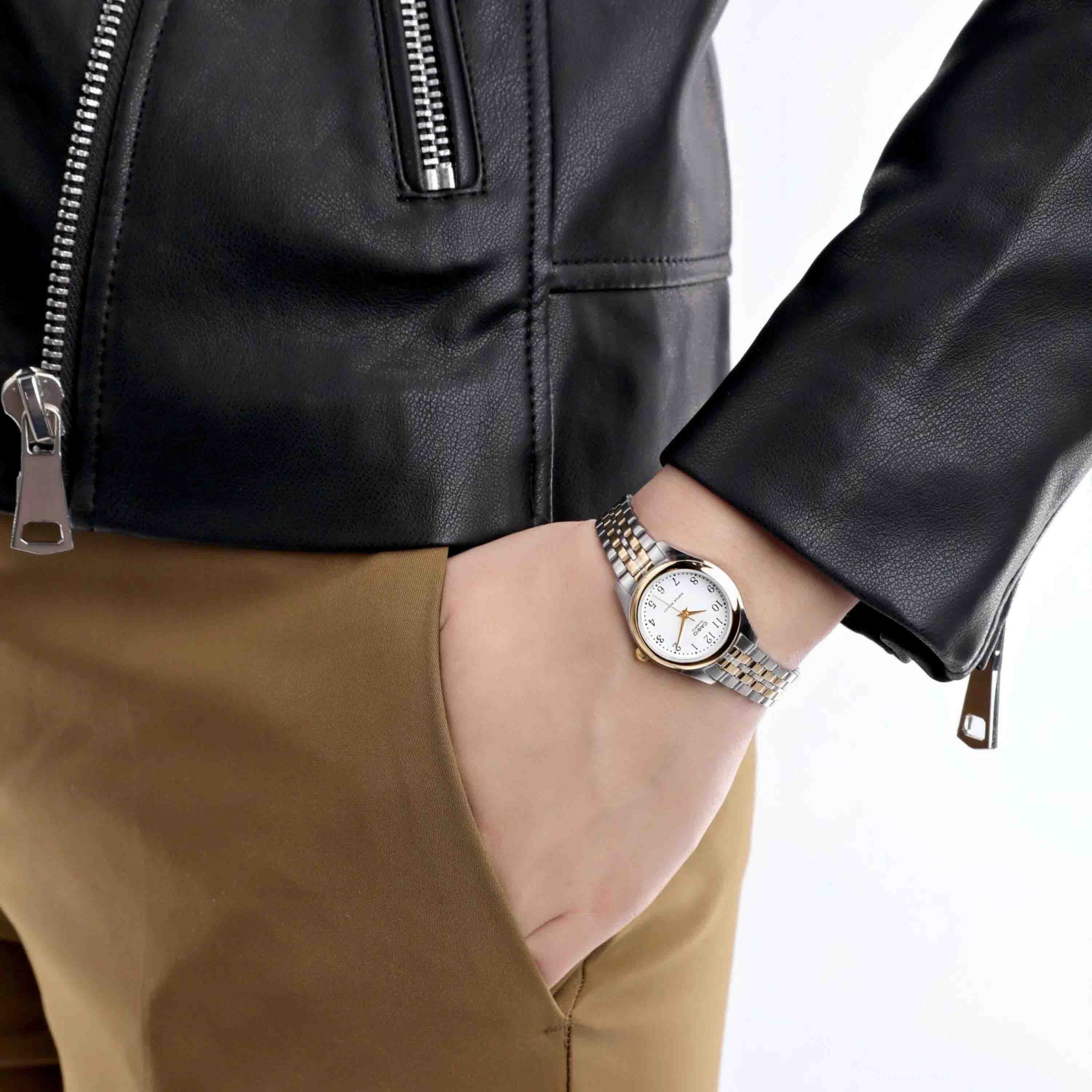 Японские мужские часы с минеральным стекломМинеральное стеклоМинеральное стекло представляет собой искусственно выращенный минерал кварца. Такое стекло отличается особой устойчивостью к повреждениям и царапинам. Уступает по некоторым качествам сапфировому стеклу. Casio Collection MTP-1129G-7B, кварцевый механизм с высокой точностью. Класс водозащиты: 30 метров, позволит защитить корпус от случайных брызг или капель дождя. Корпус часов изготовлен из стали. Стальной браслет на раскладной застёжкеРаскладная застёжкаТакой тип застёжки используется только на браслетах из металла. Она никогда не раскрывается полностью, происходит разделение на 2 и более частей. Раскладывающая застёжка снизит вероятность потери часов к минимуму. с IP-покрытиемIP-покрытиеМетод ионного напыления. Демонстрирует повышенную устойчивость к истиранию, окислению и химическим веществам. Под воздействием высокого давления и температуры около 1500°C молекулы металла надёжно соединяются с частицами корпуса часов.. БезельБезельВнешний ободок, закрепляющий стекло. В спортивных часах так называется поворотное кольцо с делениями на циферблате, выполняет роль таймера – замеряет отрезки времени на шкале. Неподвижный безель – элемент декора. Однонаправленно вращающийся безель на дайверских часах позволяет фиксировать моменты погружения и выныривания на поверхность. с IP-покрытиемIP-покрытиеМетод ионного напыления. Демонстрирует повышенную устойчивость к истиранию, окислению и химическим веществам. Под воздействием высокого давления и температуры около 1500°C молекулы металла надёжно соединяются с частицами корпуса часов..