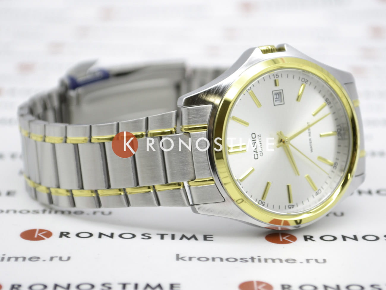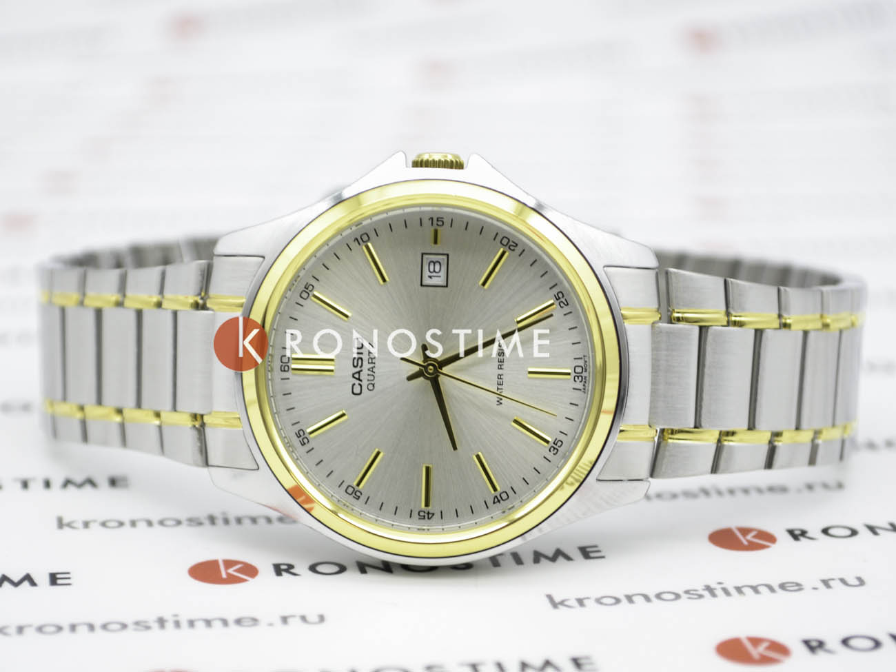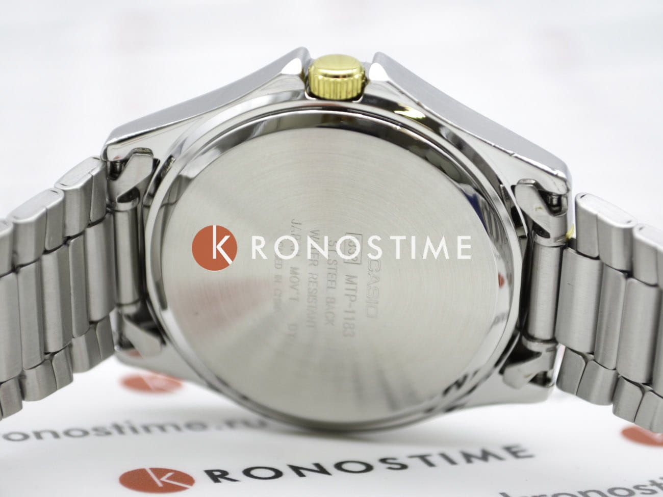 Японские мужские наручные часы с минеральным стекломМинеральное стеклоМинеральное стекло представляет собой искусственно выращенный минерал кварца. Такое стекло отличается особой устойчивостью к повреждениям и царапинам. Уступает по некоторым качествам сапфировому стеклу. MTP-1183G-7A, кварцевый механизм с высокой точностью. Класс водозащиты: 30 метров, позволит защитить корпус от случайных брызг или капель дождя. Корпус и браслет часов изготовлен из стали с IP-покрытиемIP-покрытиеМетод ионного напыления. Демонстрирует повышенную устойчивость к истиранию, окислению и химическим веществам. Под воздействием высокого давления и температуры около 1500°C молекулы металла надёжно соединяются с частицами корпуса часов.. Окошко даты находится в положении 3 часа.Стальной браслет на раскладной застёжкеРаскладная застёжкаТакой тип застёжки используется только на браслетах из металла. Она никогда не раскрывается полностью, происходит разделение на 2 и более частей. Раскладывающая застёжка снизит вероятность потери часов к минимуму..