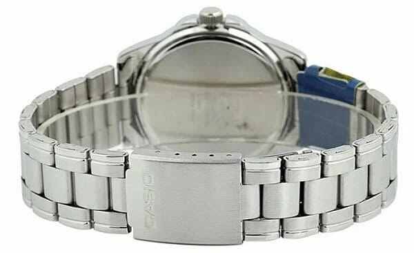 Японские мужские наручные часы с минеральным стекломМинеральное стеклоМинеральное стекло представляет собой искусственно выращенный минерал кварца. Такое стекло отличается особой устойчивостью к повреждениям и царапинам. Уступает по некоторым качествам сапфировому стеклу. Casio Collection MTP-1215A-7A, кварцевый механизм с высокой точностью. Класс водозащиты: 30 метров, позволит защитить корпус от случайных брызг или капель дождя. Корпус часов изготовлен из стали. Стальной браслет на раскладной застёжкеРаскладная застёжкаТакой тип застёжки используется только на браслетах из металла. Она никогда не раскрывается полностью, происходит разделение на 2 и более частей. Раскладывающая застёжка снизит вероятность потери часов к минимуму.. Окошко даты находится в положении 3 часа. Циферблат с метками в виде штрихов и арабских цифр выполнен по технологии Sunray (солнечные лучи). Стрелки с люминесцентным покрытиемЛюминесцентное покрытиеПозволяет считывать показания времени в темноте. Производители наносят на стрелки, часовые индексы, безель или поверхность циферблата светонакопительный состав, дающий холодное свечение..