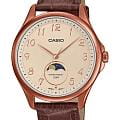 Японские мужские часы с минеральным стекломМинеральное стеклоМинеральное стекло представляет собой искусственно выращенный минерал кварца. Такое стекло отличается особой устойчивостью к повреждениям и царапинам. Уступает по некоторым качествам сапфировому стеклу. Casio Collection MTP-M110RL-5A, кварцевый механизм с высокой точностью. Изысканный корпус часов изготовлен из стали с IP-покрытиемIP-покрытиеМетод ионного напыления. Демонстрирует повышенную устойчивость к истиранию, окислению и химическим веществам. Под воздействием высокого давления и температуры около 1500°C молекулы металла надёжно соединяются с частицами корпуса часов., что обеспечивает долговечность и утончённый внешний вид. Циферблат с метками в виде арабских цифр с отображением фаз Луны в положении 6 часов. Заводная головка с защитой. Батарейка рассчитана на 3 года. Класс водозащиты: 50 метров, позволит защитить корпус от случайных брызг или капель дождя. Изысканный кожаный ремешок на стандартной застёжке гармонично дополняет корпус и обеспечивает комфортное ношение. Эти часы подойдут для повседневного ношения и станут ярким акцентом в вашем наряде.