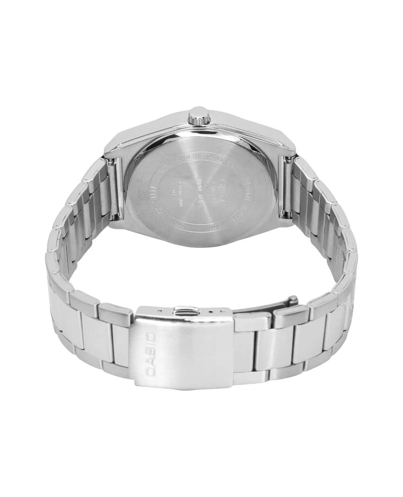 Японские мужские кварцевые часы с минеральным стекломМинеральное стеклоМинеральное стекло представляет собой искусственно выращенный минерал кварца. Такое стекло отличается особой устойчивостью к повреждениям и царапинам. Уступает по некоторым качествам сапфировому стеклу. Casio Collection MTP-M300D-7A, кварцевый механизм с высокой точностью. Корпус часов изготовлен из нержавеющей стали. Циферблат с метками в виде штрихов. Стрелки с люминесцентным покрытиемЛюминесцентное покрытиеПозволяет считывать показания времени в темноте. Производители наносят на стрелки, часовые индексы, безель или поверхность циферблата светонакопительный состав, дающий холодное свечение.. Особенностью модели является наличие индикатора фазы луны над шестью часами по циферблату. Индикатор имеет 4 положения и отображается новолуние и полнолуние, а также растущую и убывающую Луну. Батарейка рассчитана на 3 года. Класс водозащиты: 50 метров, позволит защитить корпус от случайных брызг или капель дождя. Стальной браслет на раскладной застёжкеРаскладная застёжкаТакой тип застёжки используется только на браслетах из металла. Она никогда не раскрывается полностью, происходит разделение на 2 и более частей. Раскладывающая застёжка снизит вероятность потери часов к минимуму..