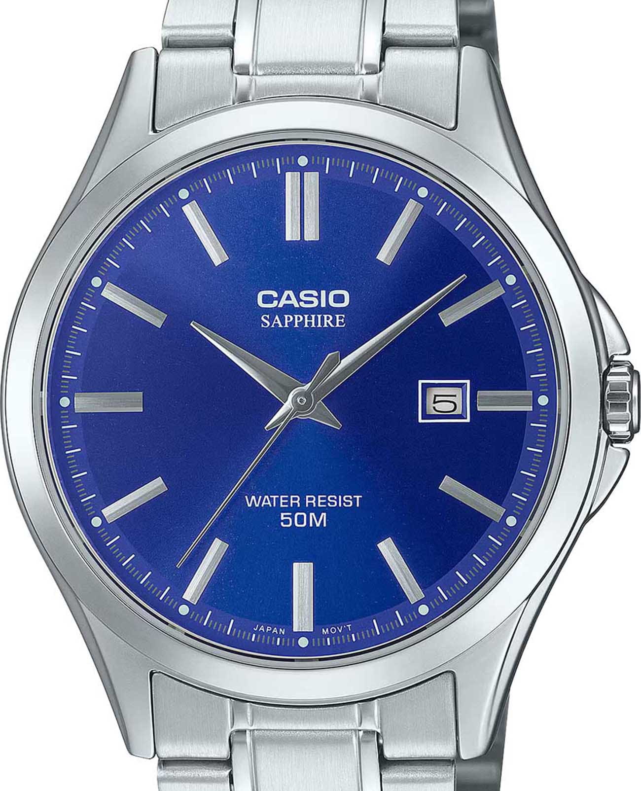 Мужские кварцевые часы Casio MTS-115D-2A1 — точность и элегантность в повседневном исполнении. Круглый корпус размером 41,3 мм из нержавеющей стали, синий циферблат с солнечной текстурой Sunray и штрихами, окошко даты в положении 3 часов. Стекло — сапфировоеСапфировое стеклоПрочный и надёжный материал из кристалла сапфира синтетического происхождения, характеризующийся особой твёрдостью и устойчивостью к царапинам и повреждениям., устойчивое к царапинам. Механизм — японский кварцевый. Водонепроницаемость 50 м. Заводная головка с защитой. Браслет — стальной на раскладной застёжкеРаскладная застёжкаТакой тип застёжки используется только на браслетах из металла. Она никогда не раскрывается полностью, происходит разделение на 2 и более частей. Раскладывающая застёжка снизит вероятность потери часов к минимуму. с двойной фиксацией. Идеальный выбор для тех, кто ценит японский дизайн и надёжную повседневную функциональность.