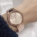 Женские японские наручные часы Casio Sheen SHE-3069PG-9AUDF, кварцевый механизм с высокой точностью. Сапфировое стекло устойчивое к появлению царапин, обладающее высокой прозрачностью. Класс водозащиты: 50 метров, позволит защитить корпус от случайных брызг или капель дождя. БезельБезельВнешний ободок, закрепляющий стекло. В спортивных часах так называется поворотное кольцо с делениями на циферблате, выполняет роль таймера – замеряет отрезки времени на шкале. Неподвижный безель – элемент декора. Однонаправленно вращающийся безель на дайверских часах позволяет фиксировать моменты погружения и выныривания на поверхность. с IP-покрытиемIP-покрытиеМетод ионного напыления. Демонстрирует повышенную устойчивость к истиранию, окислению и химическим веществам. Под воздействием высокого давления и температуры около 1500°C молекулы металла надёжно соединяются с частицами корпуса часов. украшен кристаллами. 24-часовой формат времени, дата и день недели отображены на отдельных циферблатах.