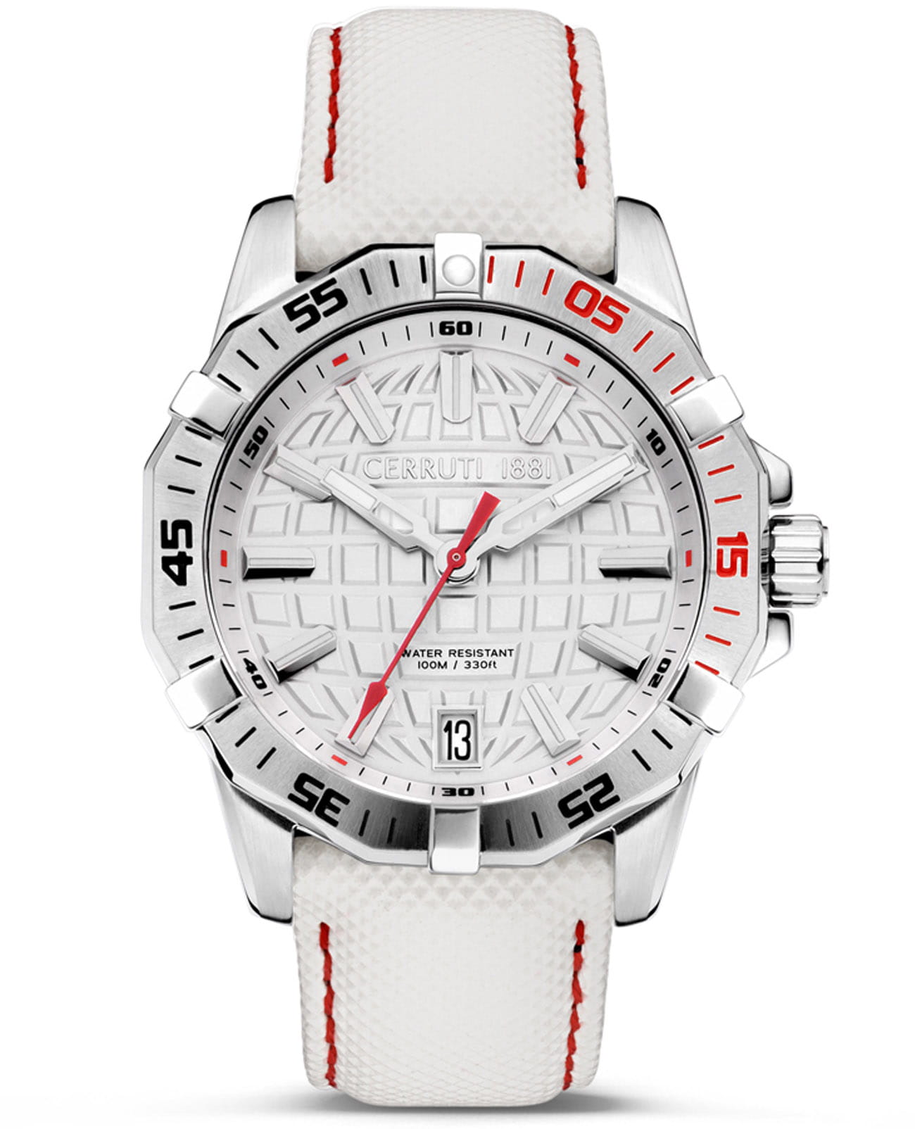 Французские мужские часы  Cerruti 1881 Vallelaghi CIWGN0007502, кварцевый механизм с высокой точностью. Минеральное стеклоМинеральное стеклоМинеральное стекло представляет собой искусственно выращенный минерал кварца. Такое стекло отличается особой устойчивостью к повреждениям и царапинам. Уступает по некоторым качествам сапфировому стеклу. устойчивое к мелким механическим повреждениям. Корпус часов изготовлен из нержавеющей стали. Циферблат выполнен с метками в виде штрихов. Окошко даты находится в положении 6 часа. Стрелки и метки с люминесцентным покрытиемЛюминесцентное покрытиеПозволяет считывать показания времени в темноте. Производители наносят на стрелки, часовые индексы, безель или поверхность циферблата светонакопительный состав, дающий холодное свечение.. Класс водозащиты: 100 метров, позволит плавать, нырять и заниматься другими водными видами спорта. Силиконовый ремешок на стандартной застежке.