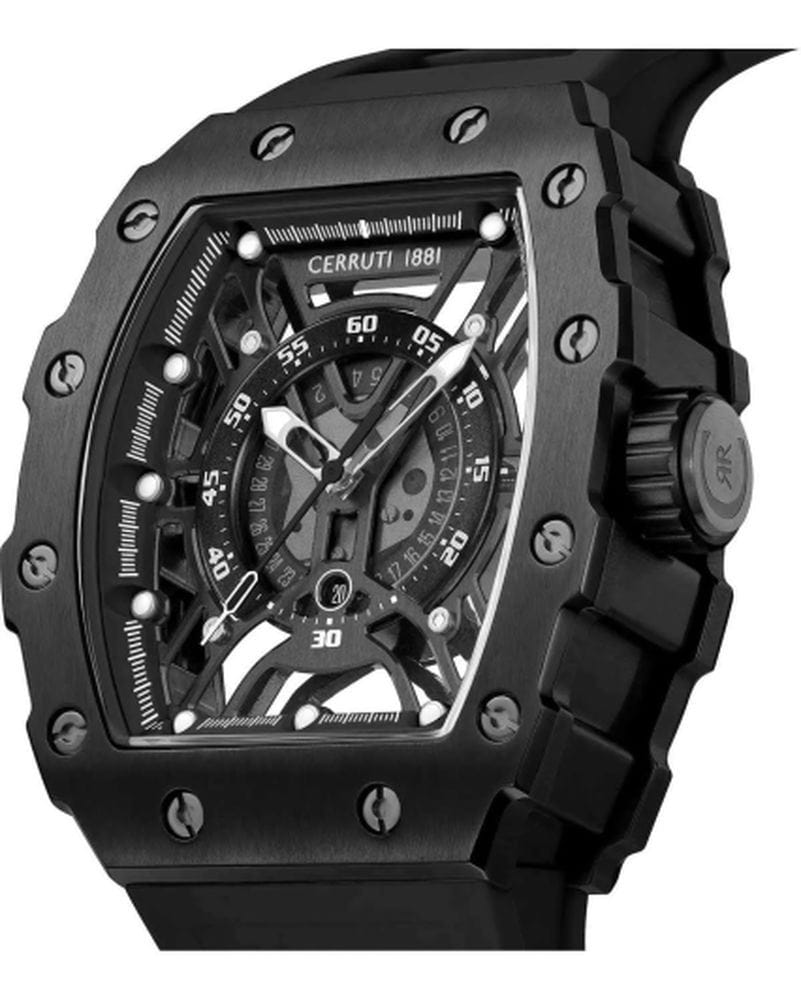 Cerruti 1881 CIWGN0057701 — эффектные мужские часы с дерзким современным дизайном, в которых сочетаются геометрическая точность линий и выразительная динамика формы. Корпус из нержавеющей стали с матовым PVD-покрытиемPVDУльтратонкое покрытие наносится в технике вакуумного напыления, сочетает в себе нитрид титана особой прочности со слоем золота или оксида хрома. Несёт в себе декоративную или защитную функцию. и мощным шестигранным безелемБезельВнешний ободок, закрепляющий стекло. В спортивных часах так называется поворотное кольцо с делениями на циферблате, выполняет роль таймера – замеряет отрезки времени на шкале. Неподвижный безель – элемент декора. Однонаправленно вращающийся безель на дайверских часах позволяет фиксировать моменты погружения и выныривания на поверхность. подчёркивает технический характер модели. Полупрозрачный скелетонизированный циферблат открывает детали механизма, придавая часам индустриальный и технологичный облик. Контрастные стрелки и метки с люминесцентным покрытиемЛюминесцентное покрытиеПозволяет считывать показания времени в темноте. Производители наносят на стрелки, часовые индексы, безель или поверхность циферблата светонакопительный состав, дающий холодное свечение. обеспечивают отличную читаемость, а прочное минеральное стеклоМинеральное стеклоМинеральное стекло представляет собой искусственно выращенный минерал кварца. Такое стекло отличается особой устойчивостью к повреждениям и царапинам. Уступает по некоторым качествам сапфировому стеклу. защищает композицию от внешних воздействий. Эластичный силиконовый ремешок гармонично сочетается с оттенками корпуса и обеспечивает комфорт при ежедневном ношении. Cerruti 1881 — это смелое воплощение итальянского стиля в спортивно-индустриальной эстетике, созданное для мужчин, уверенно идущих в ногу с временем.