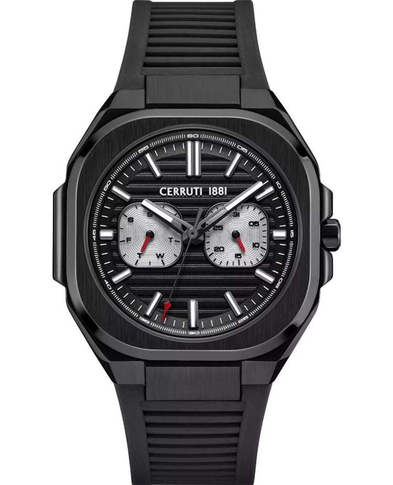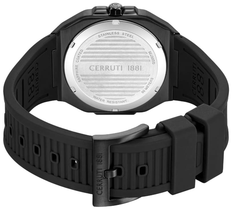 Мужские кварцевые часы Cerruti 1881 Leadri CIWGQ0073503 — лаконичный французский дизайн с практичным функционалом. Корпус из нержавеющей стали 316L с IP-покрытиемIP-покрытиеМетод ионного напыления. Демонстрирует повышенную устойчивость к истиранию, окислению и химическим веществам. Под воздействием высокого давления и температуры около 1500°C молекулы металла надёжно соединяются с частицами корпуса часов., диаметром 39 мм. Циферблат — чёрный, с штриховыми метками и индикацией даты, дня недели и месяца. Стекло — минеральноеМинеральное стеклоМинеральное стекло представляет собой искусственно выращенный минерал кварца. Такое стекло отличается особой устойчивостью к повреждениям и царапинам. Уступает по некоторым качествам сапфировому стеклу. с сапфировым покрытием. Стрелки и метки с люминесцентным покрытиемЛюминесцентное покрытиеПозволяет считывать показания времени в темноте. Производители наносят на стрелки, часовые индексы, безель или поверхность циферблата светонакопительный состав, дающий холодное свечение.. Ремешок силиконовый на стандартной застёжке. Водонепроницаемость 50 м.