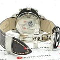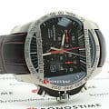 ХронографХронографФункция позволяет измерять отрезки времени с особой точностью: часы, минуты, секунды. Верным признаком хронографа является наличие на циферблате 3 дополнительных окошек-счётчиков. в спортивном стиле имеет циферблат с красными акцентами. Аксессуар оснащён функцией секундомера, тахиметраТахиметрРазмеченная шкала, располагается на ободке или безеле часов. Тахиметр позволяет рассчитать скорость на определённом участке пути, расстояние измеряется в километрах или милях., отображает текущую дату. Швейцарский кварцевый механизм ETA 251.262 отличается высокой точностью хода. Ремешок выполнен из натуральной телячьей кожи.