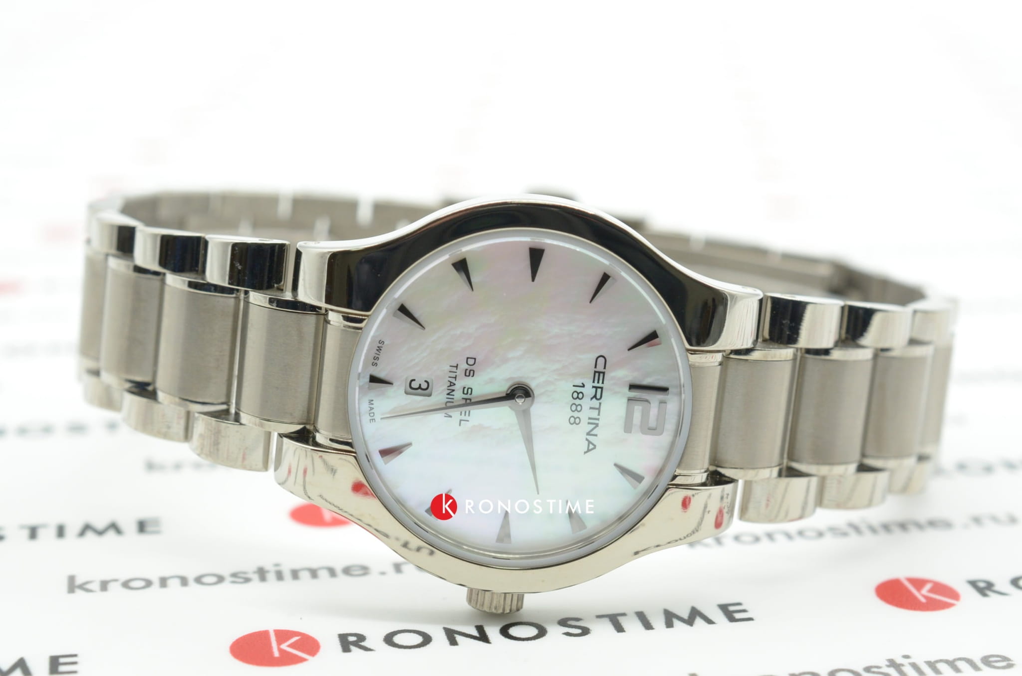 С виду женственная модель внутри – крепкий орешек. Корпус с концепцией DSDS ConceptDouble Security Concept, обозначает двойную надёжность и безупречную точность часов Certina. Двойная система защиты подразумевает обеспечение максимальной устойчивости к ударам и высоких показателей водонепроницаемости. выполнен из прочного гипоаллергенного титана. Перламутровый циферблат защищён сапфировым стеклом. Водозащита WR 100. Отображение числа.
