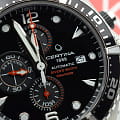 Апертура даты. Водозащита до 300 метров. Спортивный дизайн, отлично читаемый циферблат, прекрасное качество браслета, в частности регулируемая бакля, функциональность. Наличие хронографа позволяет делать временные замеры различных активностей (задержка дыхания, длительность погружения/забега/поездки...). Механический хронограф менее функционален, чем большинство кварцевых, но за то не зависит от состояния и качества элемента питания, не подвержен влиянию электромагнитных импульсов.