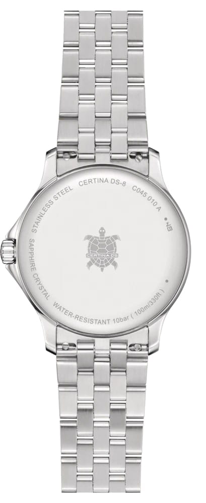 Швейцарские женские часы Certina DS-8 Lady C045.010.11.051.00 из коллекции DS-8 выглядят стильно и гламурно, модель добавит изящества в повседневный образ. Стальной браслет из нескольких рядов переплетающихся звеньев элегантно выглядит на запястье. Ударопрочность и водонепроницаемость 10 бар – концепция DS ConceptDS ConceptDouble Security Concept, обозначает двойную надёжность и безупречную точность часов Certina. Двойная система защиты подразумевает обеспечение максимальной устойчивости к ударам и высоких показателей водонепроницаемости.. Одностороннее антибликовое покрытие стекла из сапфира. . Индикация текущего числа, функция EOLEOLПредставляет собой систему, уведомляющую владельца часов о необходимости замены элемента питания. За 2 недели до полного разряда батарейки секундная стрелка перестаёт ходить чётко и начинает перепрыгивать на 3-4 деления.. Диаметр корпуса: 31 мм. Производство и сборка: Швейцария.