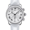 ХронографХронографФункция позволяет измерять отрезки времени с особой точностью: часы, минуты, секунды. Верным признаком хронографа является наличие на циферблате 3 дополнительных окошек-счётчиков. стильно смотрится на запястье, модель дополнена ремешком из натуральной кожи. Внутри стального корпуса - швейцарский кварцевый механизм ETA G15.211. Стрелки имеют люминесцентную подсветкуЛюминесцентное покрытиеПозволяет считывать показания времени в темноте. Производители наносят на стрелки, часовые индексы, безель или поверхность циферблата светонакопительный состав, дающий холодное свечение.. Заводная головка украшена кабашоном.