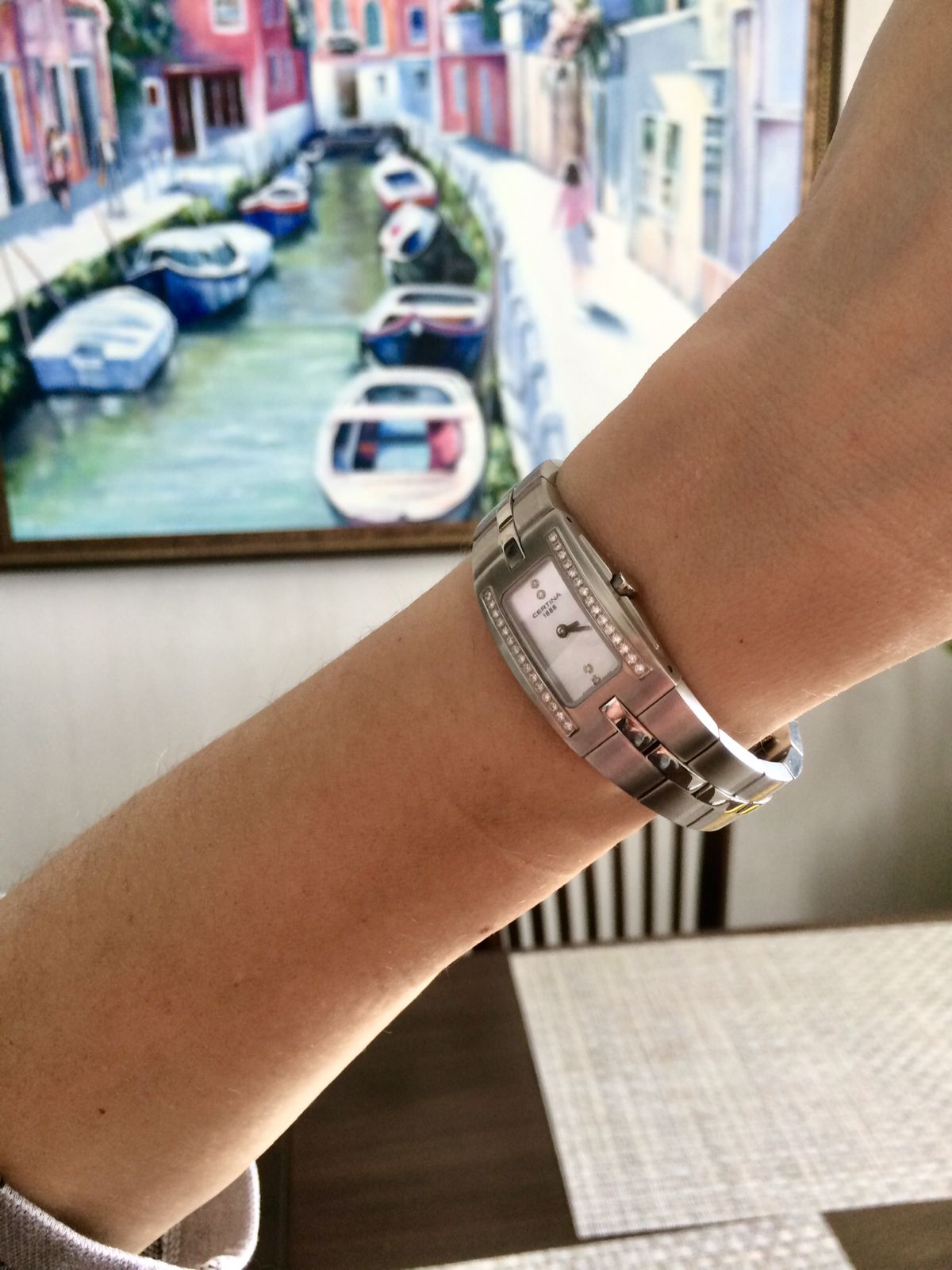 Часы на батарейке - точные и простые в эксплуатации. Вам не потребуется постоянно подзаводить их. Достаточно один раз установить время и наслаждаться работой вашего аксессуара.30 бриллиантов на корпусе и 4 бриллианта на циферблате