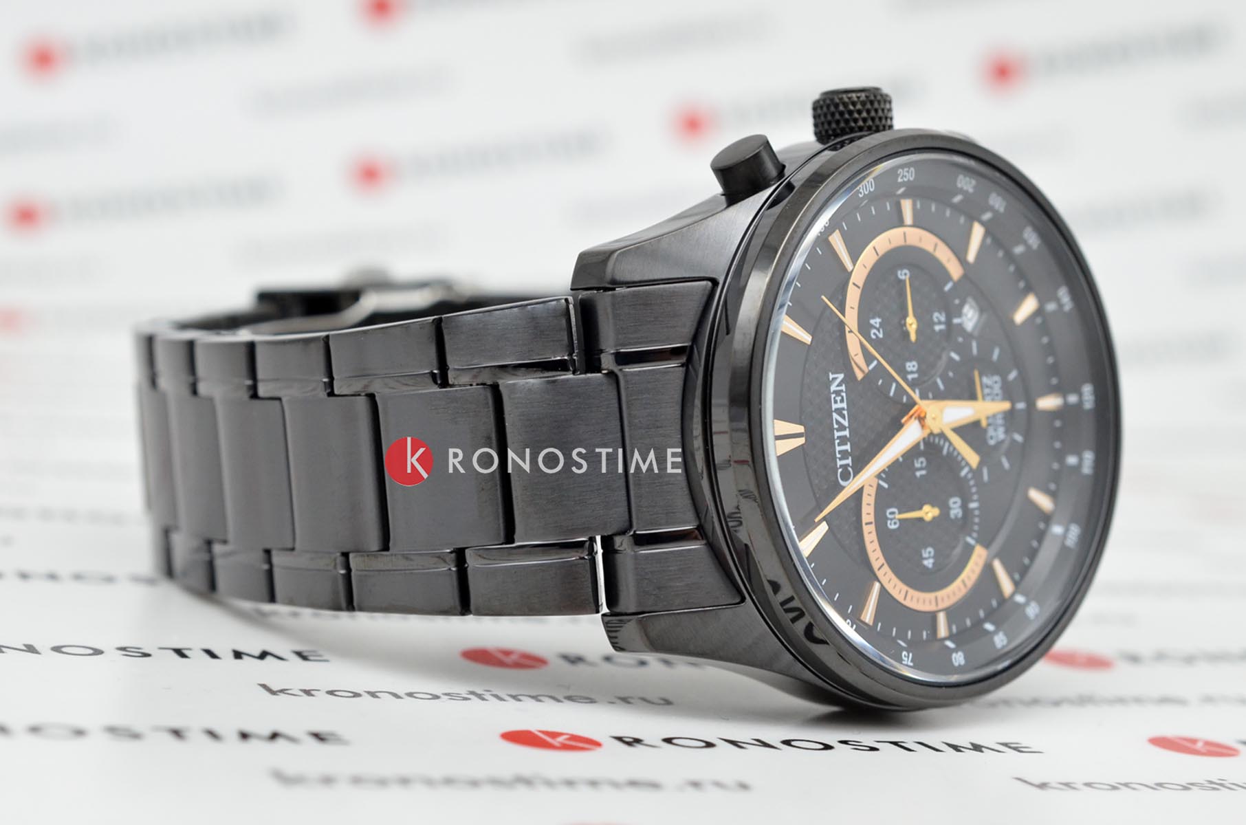 Citizen Chronograph AN8195-58E часы-хронографХронографФункция позволяет измерять отрезки времени с особой точностью: часы, минуты, секунды. Верным признаком хронографа является наличие на циферблате 3 дополнительных окошек-счётчиков. с секундомеромСекундомерСекундоме́р — прибор, способный измерять интервалы времени с точностью до долей секунды. и тахиметромТахиметрРазмеченная шкала, располагается на ободке или безеле часов. Тахиметр позволяет рассчитать скорость на определённом участке пути, расстояние измеряется в километрах или милях.. Корпус из нержавеющей стали с IP-покрытиемIP-покрытиеМетод ионного напыления. Демонстрирует повышенную устойчивость к истиранию, окислению и химическим веществам. Под воздействием высокого давления и температуры около 1500°C молекулы металла надёжно соединяются с частицами корпуса часов. диаметром 42 мм идеально сбалансирован. Минеральное стеклоМинеральное стеклоМинеральное стекло представляет собой искусственно выращенный минерал кварца. Такое стекло отличается особой устойчивостью к повреждениям и царапинам. Уступает по некоторым качествам сапфировому стеклу. обеспечивает отличную защиту циферблата от царапин. Часы работают на основе кварцевого механизма. Стальной браслет на раскладной застёжкеРаскладная застёжкаТакой тип застёжки используется только на браслетах из металла. Она никогда не раскрывается полностью, происходит разделение на 2 и более частей. Раскладывающая застёжка снизит вероятность потери часов к минимуму. идеально дополняют дизайн часов, обеспечивая комфортное ношение. Стрелки и метки на циферблате имеют люминесцентное покрытиеЛюминесцентное покрытиеПозволяет считывать показания времени в темноте. Производители наносят на стрелки, часовые индексы, безель или поверхность циферблата светонакопительный состав, дающий холодное свечение. позволяющее легко определять время даже в темноте. Циферблат украшен сотовым декоративным узором. Клиновидные стрелки в стиле Dauphine. Окошко даты находится между часовыми отметками 4 и 5. 12-ти и 24-х часовой формат времени отображается на отдельном циферблате. Часы обладают впечатляющей водонепроницаемостью до 100WR, что делает их идеальными для повседневной носки.