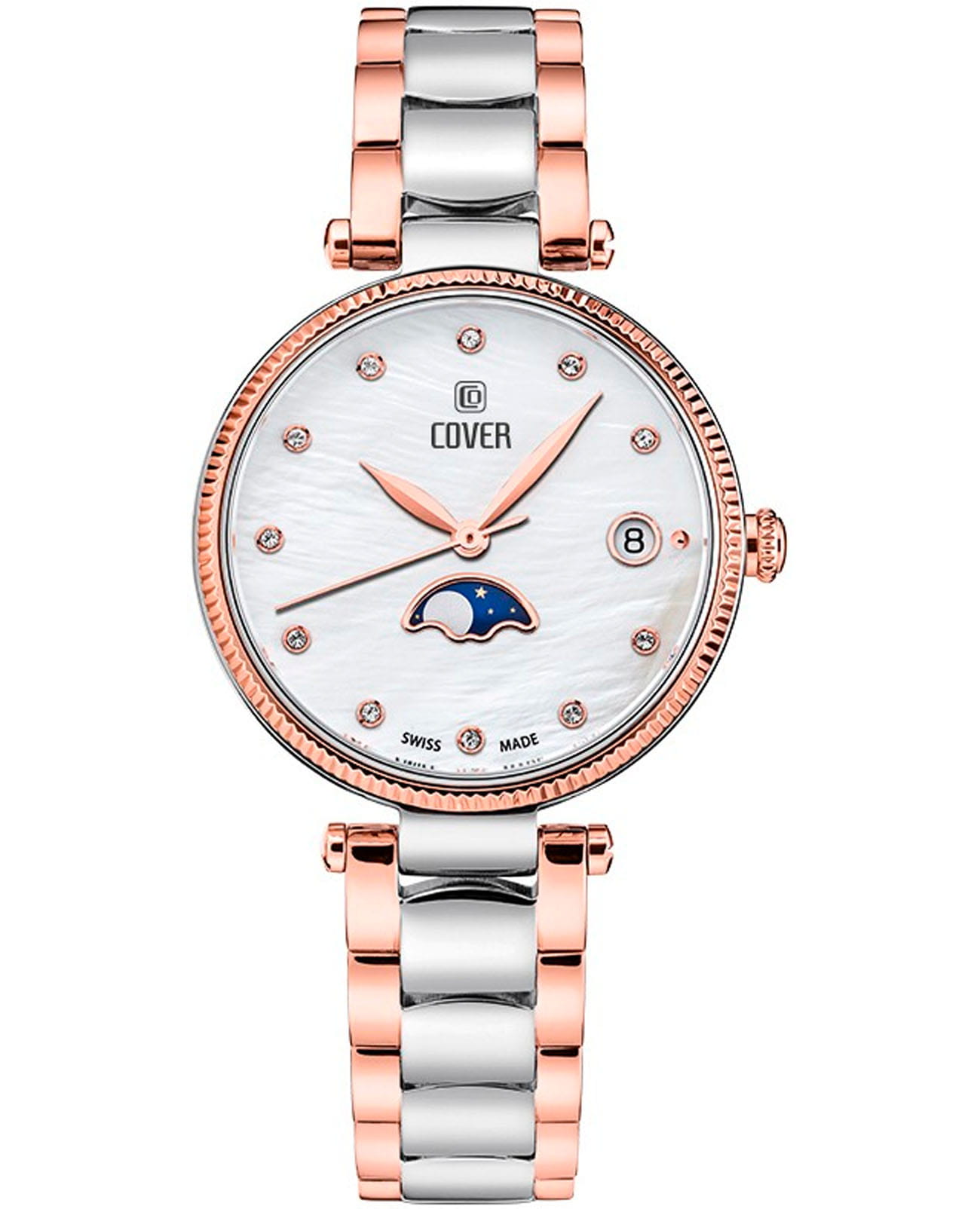 Женские наручные часы Cover CO196.03 из коллекции Fly Me To The Moon сочетают в себе элегантность и современные технологии. Модель обладает круглым корпусом диаметром 32 мм, изготовленным из нержавеющей стали с PVDPVDУльтратонкое покрытие наносится в технике вакуумного напыления, сочетает в себе нитрид титана особой прочности со слоем золота или оксида хрома. Несёт в себе декоративную или защитную функцию. покрытием цвета розового золота, что придает часам благородный вид. Браслет выполнен из стали с частичным покрытием, оснащен застежкой-бабочкойЗастёжка "бабочка"Такой вид застёжки дополняется предохранителями, помогающими избежать случайного раскрытия браслета. Обладают изящным исполнением. , обеспечивающей комфортное ношение. Молочно-белый перламутровый циферблат украшен 11 кристаллами Swarovski, выполняющими роль часовых индексов, а также имеет круглую апертуру даты на «3 часах» и индикатор фаз Луны на «6 часах». Для защиты использовано сапфировое стекло, устойчивое к царапинам. Часы работают на кварцевом механизме, гарантирующем точное время без необходимости подзаводки. Водонепроницаемость достигает 5 атмосфер (50 метров), что позволяет использовать их в повседневной жизни, включая контакт с водой, но не рекомендуется для плавания или дайвинга. Эти швейцарские часы станут прекрасным дополнением как классического, так и повседневного образа.