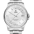 Мужские наручные часы Cover CO200.02 из коллекции Marville сочетают в себе классический дизайн и высокую точность швейцарского производства. Модель обладает круглым корпусом диаметром 39 мм, изготовленным из нержавеющей стали, что придает изделию благородный внешний вид. Серебристый циферблат с апертурой даты на «3 часах» оснащен стрелками для часов, минут и секунд. Для защиты используется сапфировое стеклоСапфировое стеклоПрочный и надёжный материал из кристалла сапфира синтетического происхождения, характеризующийся особой твёрдостью и устойчивостью к царапинам и повреждениям. с антибликовым покрытиемАнтибликовое покрытиеСлой оксида металла в 0,13-0,3 микрон, благодаря которому стекло часов не бликует и не отражает свет. Антибликовое покрытие уменьшает отражение света в 10 раз, обеспечивая отличную читаемость показателей циферблата., обеспечивающее прочную защиту от царапин и превосходную читаемость времени даже при ярком свете. Часы работают на высокоточном кварцевом механизме ETA, гарантирующем исключительную точность хода с погрешностью около 20 секунд в месяц. Браслет выполнен из нержавеющей стали и оснащен раскладной застежкойРаскладная застёжкаТакой тип застёжки используется только на браслетах из металла. Она никогда не раскрывается полностью, происходит разделение на 2 и более частей. Раскладывающая застёжка снизит вероятность потери часов к минимуму., обеспечивающей комфортное ношение и безопасность. Водонепроницаемость достигает 10 атмосфер (100 метров), что позволяет использовать их во время плавания и других водных видов спорта, однако не рекомендуется для глубоководного дайвинга. Эти швейцарские часы станут идеальным дополнением как классического, так и современного образа мужчины, ценящего качество и стиль.