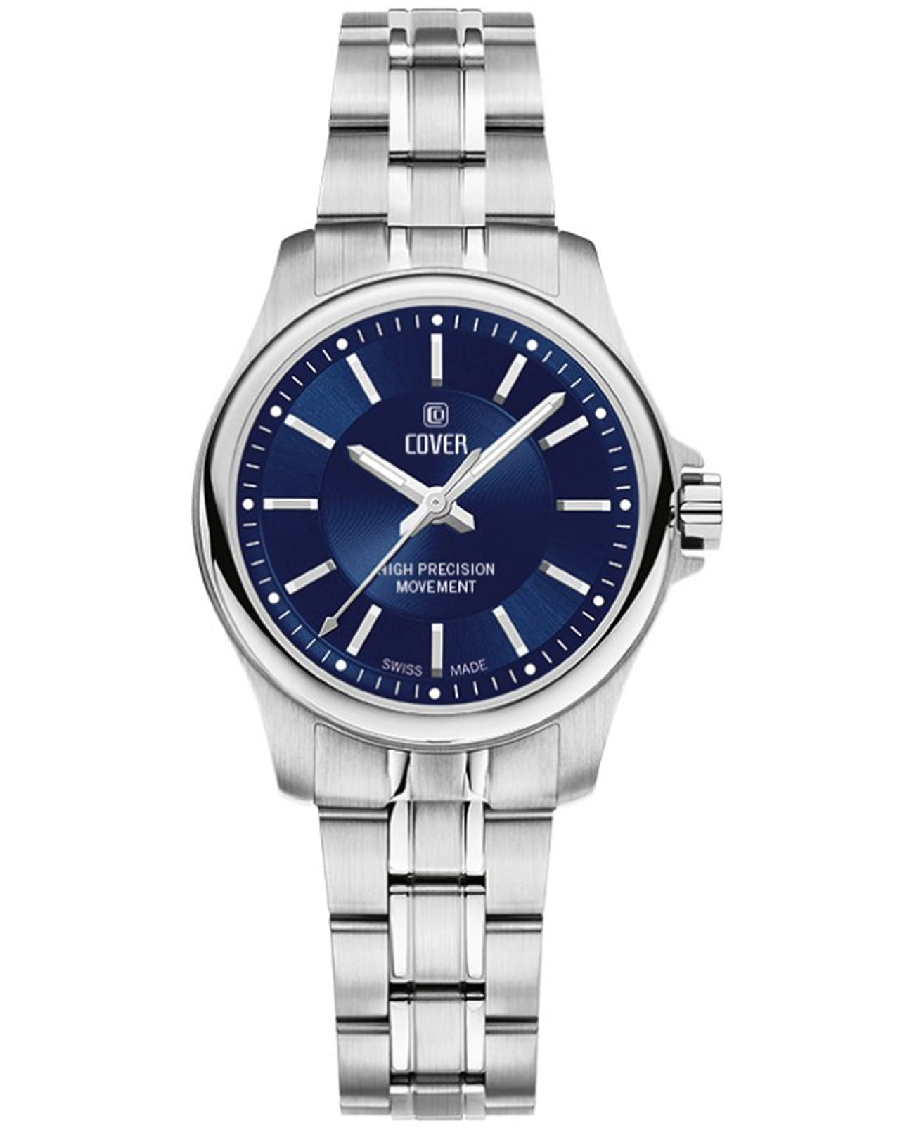 Женские наручные часы Cover CO201.03 из коллекции Marville сочетают в себе классический дизайн и высокую точность швейцарского производства. Модель обладает круглым корпусом диаметром 28 мм, изготовленным из нержавеющей стали, что придает изделию благородный внешний вид. Синий циферблат оснащен стрелками с люминесцентным покрытиемЛюминесцентное покрытиеПозволяет считывать показания времени в темноте. Производители наносят на стрелки, часовые индексы, безель или поверхность циферблата светонакопительный состав, дающий холодное свечение.. Для защиты используется сапфировое стеклоСапфировое стеклоПрочный и надёжный материал из кристалла сапфира синтетического происхождения, характеризующийся особой твёрдостью и устойчивостью к царапинам и повреждениям. с антибликовым покрытиемАнтибликовое покрытиеСлой оксида металла в 0,13-0,3 микрон, благодаря которому стекло часов не бликует и не отражает свет. Антибликовое покрытие уменьшает отражение света в 10 раз, обеспечивая отличную читаемость показателей циферблата., обеспечивающее прочную защиту от царапин и превосходную читаемость времени даже при ярком свете. Часы работают на высокоточном кварцевом механизме ETA, гарантирующем исключительную точность хода с погрешностью около 20 секунд в месяц. Браслет выполнен из нержавеющей стали и оснащен раскладной застежкойРаскладная застёжкаТакой тип застёжки используется только на браслетах из металла. Она никогда не раскрывается полностью, происходит разделение на 2 и более частей. Раскладывающая застёжка снизит вероятность потери часов к минимуму., обеспечивающей комфортное ношение и безопасность. Водонепроницаемость достигает 10 атмосфер (100 метров), что позволяет использовать их во время плавания и других водных видов спорта, однако не рекомендуется для глубоководного дайвинга. Эти швейцарские часы станут идеальным дополнением как классического, так и современного образа.
