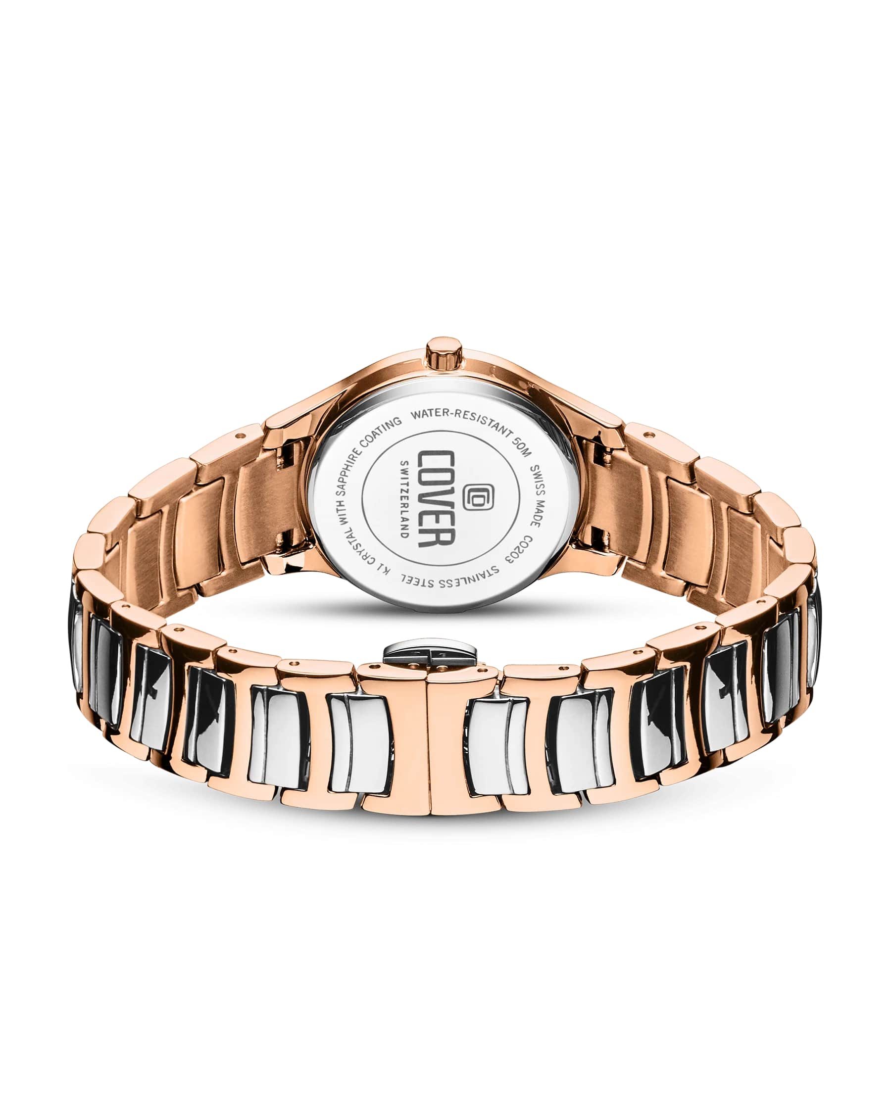 Женские наручные часы Sandara CO203.05 сочетают в себе элегантный дизайн и надежность современных технологий. Модель обладает круглым корпусом диаметром 28 мм, изготовленным из нержавеющей стали, что обеспечивает высокую устойчивость к внешним воздействиям. БезельБезельВнешний ободок, закрепляющий стекло. В спортивных часах так называется поворотное кольцо с делениями на циферблате, выполняет роль таймера – замеряет отрезки времени на шкале. Неподвижный безель – элемент декора. Однонаправленно вращающийся безель на дайверских часах позволяет фиксировать моменты погружения и выныривания на поверхность. с PVD-покрытиемPVDУльтратонкое покрытие наносится в технике вакуумного напыления, сочетает в себе нитрид титана особой прочности со слоем золота или оксида хрома. Несёт в себе декоративную или защитную функцию.. Браслет выполнен из нержавеющей стали с PVD-покрытиемPVDУльтратонкое покрытие наносится в технике вакуумного напыления, сочетает в себе нитрид титана особой прочности со слоем золота или оксида хрома. Несёт в себе декоративную или защитную функцию. и застежкой-бабочкойЗастёжка "бабочка"Такой вид застёжки дополняется предохранителями, помогающими избежать случайного раскрытия браслета. Обладают изящным исполнением. , которая отличается удобством использования и подходит для запястий любого размера благодаря своей посадке. Циферблат декорирован кристаллами, которые придают часам особый шик и неповторимый вид. Для защиты используется сапфировое стеклоСапфировое стеклоПрочный и надёжный материал из кристалла сапфира синтетического происхождения, характеризующийся особой твёрдостью и устойчивостью к царапинам и повреждениям., обеспечивающее прочную защиту от царапин. Часы работают на кварцевом механизме, что гарантирует точное время без необходимости подзаводки. Водонепроницаемость часов составляет 5 атмосфер, что позволяет использовать их в повседневной жизни, однако не рекомендуется для плавания или водных видов спорта.