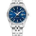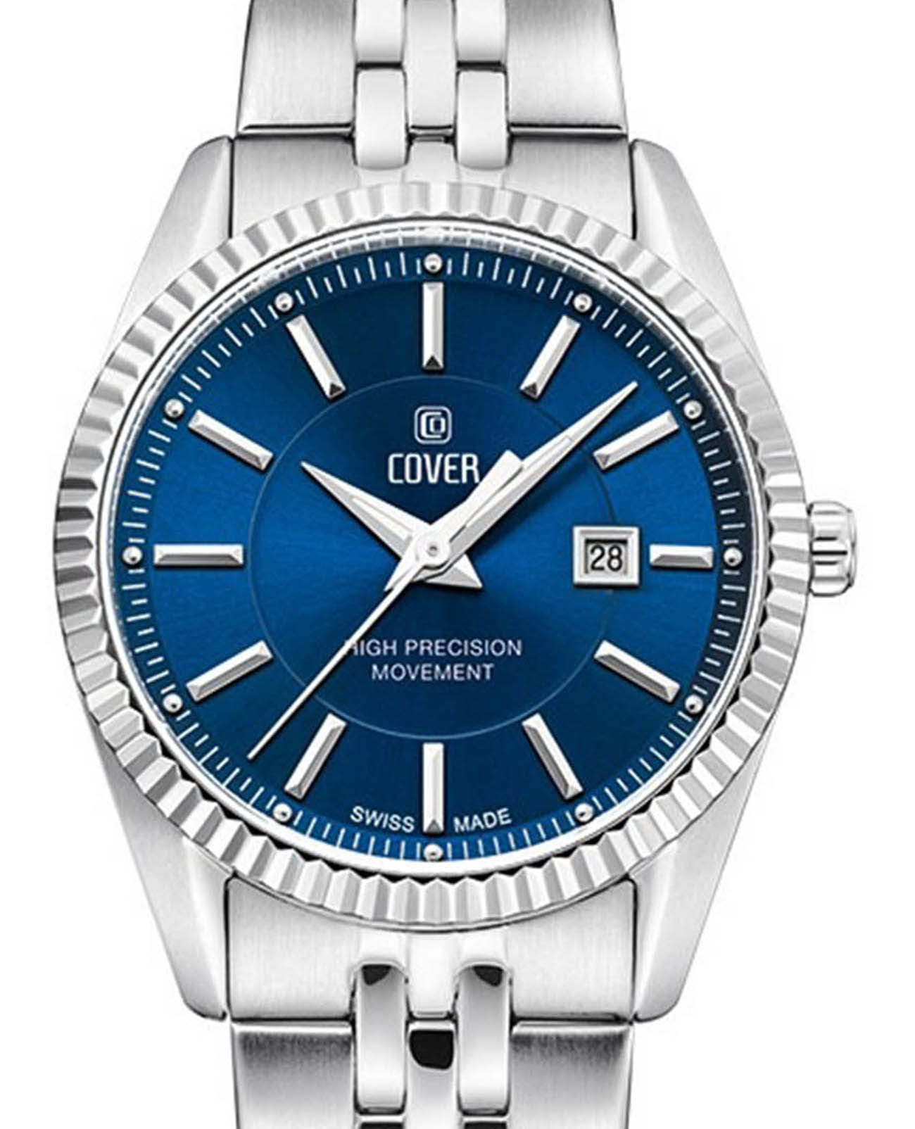 Часы COVER CO209.03 из коллекции Alston – элегантная модель швейцарского производства. Эти часы станут идеальным аксессуаром для элегантных дам, которые ценят стиль и качество. Корпус и браслет с раскладной застёжкойРаскладная застёжкаТакой тип застёжки используется только на браслетах из металла. Она никогда не раскрывается полностью, происходит разделение на 2 и более частей. Раскладывающая застёжка снизит вероятность потери часов к минимуму. изготовлены из нержавеющей стали, имеют диаметр 30 мм. На синем циферблате расположены  накладные римские цифры. Надежное минеральное стеклоМинеральное стеклоМинеральное стекло представляет собой искусственно выращенный минерал кварца. Такое стекло отличается особой устойчивостью к повреждениям и царапинам. Уступает по некоторым качествам сапфировому стеклу. защищает часы от царапин и долго сохраняет первоначальный внешний вид. Они показывают день месяца, индикатор которых с накладной рамкой расположен в положении «3 часа». Водозащита 50 метров делает часы практичными для повседневного использования. На часовую, минутную стрелки нанесено люминесцентное покрытиеЛюминесцентное покрытиеПозволяет считывать показания времени в темноте. Производители наносят на стрелки, часовые индексы, безель или поверхность циферблата светонакопительный состав, дающий холодное свечение., которое светится в темноте, создавая необычное изображение. Эти часы идеально подойдут для светских раутов, бизнес-встреч и других важных событий, подчеркнут вашу элегантность и статус.