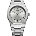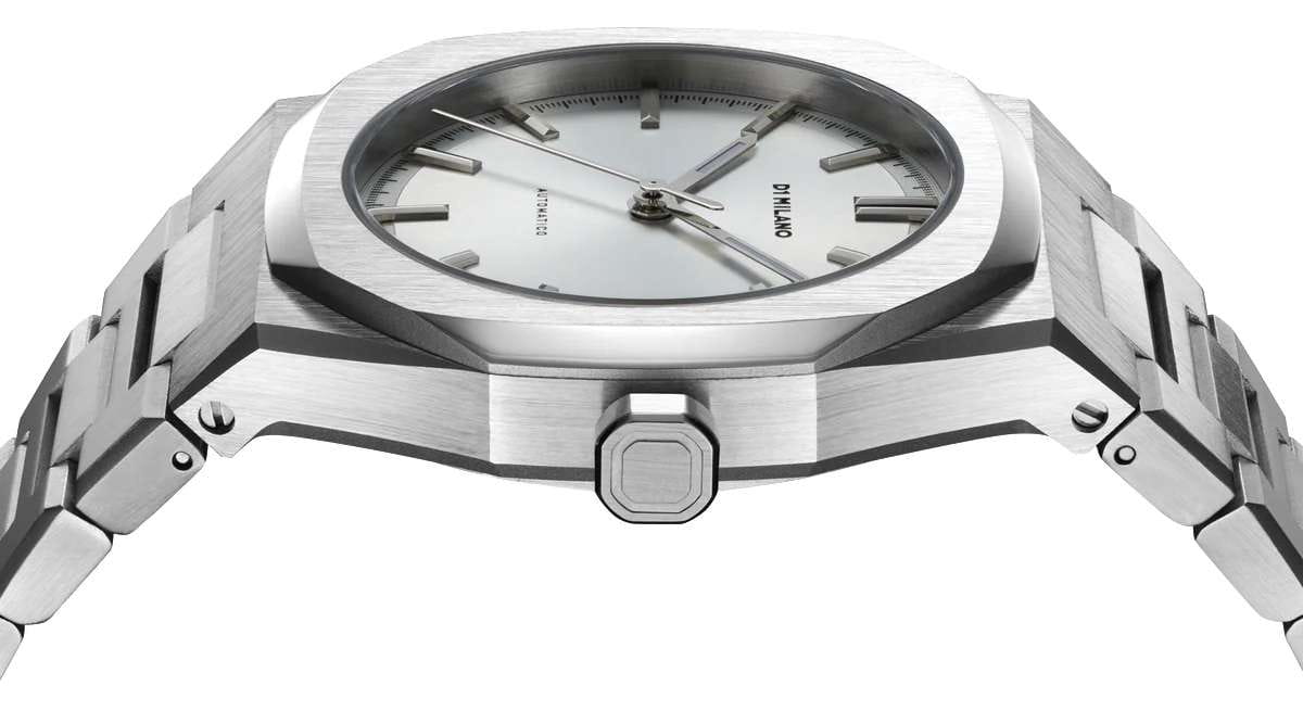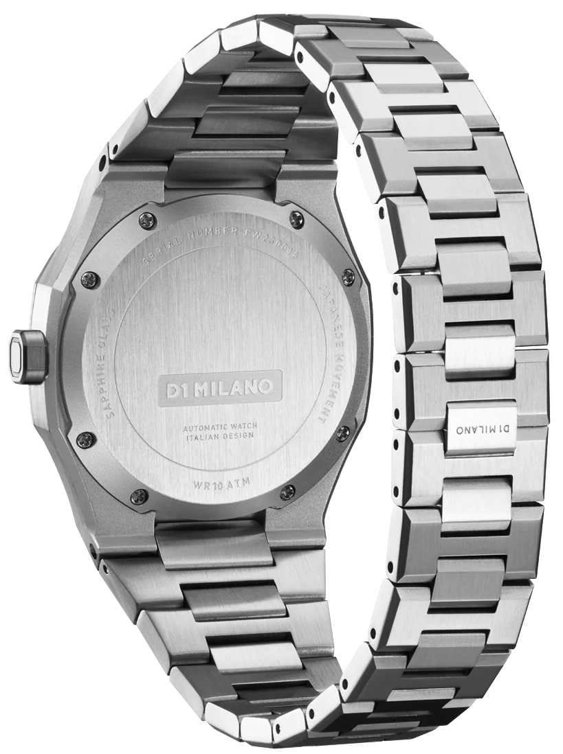 Часы D1 Milano Antique Code ATBU01 – стильный аксессуар для современных женщин. Часы механические с автоподзаводом. Корпус выполнен из прочной нержавеющей стали 316L, а серебристый циферблат украшен простыми штрихами вместо цифр. Стрелки с люминесцентным покрытиемЛюминесцентное покрытиеПозволяет считывать показания времени в темноте. Производители наносят на стрелки, часовые индексы, безель или поверхность циферблата светонакопительный состав, дающий холодное свечение.. Задняя крышка закреплена на 8 винтах, что обеспечивает надежность конструкции. Стальной браслет на скрытой раскладной застёжкеРаскладная застёжкаТакой тип застёжки используется только на браслетах из металла. Она никогда не раскрывается полностью, происходит разделение на 2 и более частей. Раскладывающая застёжка снизит вероятность потери часов к минимуму..  Часы имеют водозащиту 100 метров (100WR), что позволит плавать, нырять и заниматься другими водными видами спорта. Часы сочетают в себе классический дизайн и современные технологии производства.