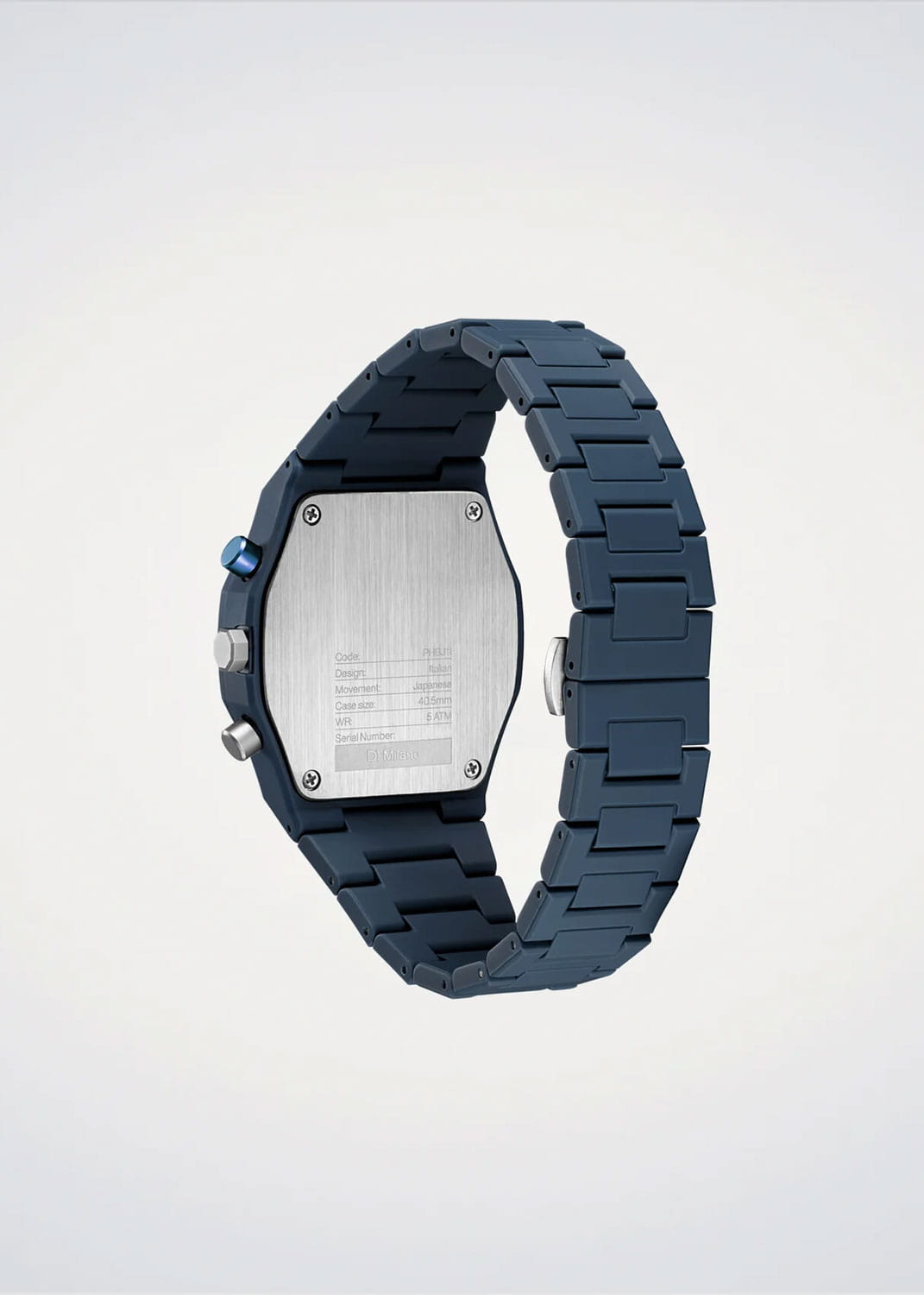 Мужские кварцевые часы-хронографХронографФункция позволяет измерять отрезки времени с особой точностью: часы, минуты, секунды. Верным признаком хронографа является наличие на циферблате 3 дополнительных окошек-счётчиков. D1 Milano Polychrono PHBJ12 — это стильное сочетание элегантности и современного дизайна. Изящный корпус выполнен из пластика, диаметром 40,5 мм, что придаст образу элегантности и надежности. Изысканный циферблат с метками в виде штрихов придает модели особый блеск. Циферблат защищен минеральным стекломМинеральное стеклоМинеральное стекло представляет собой искусственно выращенный минерал кварца. Такое стекло отличается особой устойчивостью к повреждениям и царапинам. Уступает по некоторым качествам сапфировому стеклу. с антибликовым покрытиемАнтибликовое покрытиеСлой оксида металла в 0,13-0,3 микрон, благодаря которому стекло часов не бликует и не отражает свет. Антибликовое покрытие уменьшает отражение света в 10 раз, обеспечивая отличную читаемость показателей циферблата., обеспечивающий устойчивость к царапинам. Часы оснащены надежным кварцевым механизмом. Пластиковый браслет на застёжке-бабочке с кнопкамиЗастёжка "бабочка"Такой вид застёжки дополняется предохранителями, помогающими избежать случайного раскрытия браслета. Обладают изящным исполнением. , гарантирует комфортное и безопасное ношение. Класс водозащиты: 50 метров позволит защитить корпус от случайных брызг или капель дождя. Индивидуальный серийный номер. Отличный выбор для тех, кто ценит утонченность и качество.