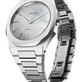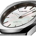Женские наручные часы D1 Milano UTBL19 из коллекции Ultra Thin сочетают в себе элегантный дизайн и современные технологии. Модель обладает круглым корпусом диаметром 34 мм, изготовленным из высококачественной нержавеющей стали. Толщина ультратонкого корпуса составляет всего 6,45 мм, что делает аксессуар легким и удобным для повседневного использования. Браслет также выполнен из нержавеющей стали с раскладной застежкойРаскладной замокДанный вариант застежки используется только на часах с металлическим браслетом. Отличительная особенность такого крепления в том, что длина браслета становится универсальной и вы можете самостоятельно отрегулировать нужный вам размер – застежка просто двигается по браслету часов., гарантирующей комфортное ношение и безопасность. Циферблат выполнен из перламутра серебристого цвета, украшен метками в виде штрихов и оснащен стрелочным механизмом, который подчеркивает элегантность модели. Для защиты используется сапфировое стеклоСапфировое стеклоПрочный и надёжный материал из кристалла сапфира синтетического происхождения, характеризующийся особой твёрдостью и устойчивостью к царапинам и повреждениям. с антибликовым покрытиемАнтибликовое покрытиеСлой оксида металла в 0,13-0,3 микрон, благодаря которому стекло часов не бликует и не отражает свет. Антибликовое покрытие уменьшает отражение света в 10 раз, обеспечивая отличную читаемость показателей циферблата., обеспечивающее прочную защиту от царапин и бликов. Часы работают на кварцевом механизме Miyota 1L22, гарантирующем точность хода без необходимости регулярного подзавода. Водонепроницаемость часов достигает 5 атмосфер (50 метров), что позволяет использовать их во время мытья рук или плавания, однако не рекомендуется для глубоководного дайвинга.