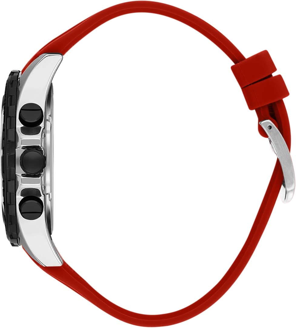 Мужские кварцевые часы-хронограф Daniel Klein — это удобный и многофункциональный аксессуар. Корпус диаметром 44 мм выполнен из нержавеющей стали. БезельБезельВнешний ободок, закрепляющий стекло. В спортивных часах так называется поворотное кольцо с делениями на циферблате, выполняет роль таймера – замеряет отрезки времени на шкале. Неподвижный безель – элемент декора. Однонаправленно вращающийся безель на дайверских часах позволяет фиксировать моменты погружения и выныривания на поверхность. с IP-покрытиемIP-покрытиеМетод ионного напыления. Демонстрирует повышенную устойчивость к истиранию, окислению и химическим веществам. Под воздействием высокого давления и температуры около 1500°C молекулы металла надёжно соединяются с частицами корпуса часов.. Циферблат красного цвета выполнен по технологии Sunray («солнечные лучи») и оформлен штрихами, арабской цифрой 12, стрелками и тремя субциферблатами хронографа. Присутствуют индикаторы 24-часового формата времени и тахиметрТахиметрРазмеченная шкала, располагается на ободке или безеле часов. Тахиметр позволяет рассчитать скорость на определённом участке пути, расстояние измеряется в километрах или милях. на безеле. Окошко даты расположено между 4 и 5 часами. Стрелки и метки с люминесцентным покрытиемЛюминесцентное покрытиеПозволяет считывать показания времени в темноте. Производители наносят на стрелки, часовые индексы, безель или поверхность циферблата светонакопительный состав, дающий холодное свечение., обеспечивающим хорошую читаемость в темноте. Циферблат защищён минеральным стекломМинеральное стеклоМинеральное стекло представляет собой искусственно выращенный минерал кварца. Такое стекло отличается особой устойчивостью к повреждениям и царапинам. Уступает по некоторым качествам сапфировому стеклу.. Заводная головка рифлёная, с защитой. Часы оснащены силиконовым ремешком на классической пряжке. Водонепроницаемость 50 м позволяет использовать часы в повседневных условиях. Идеальный выбор для тех, кто ценит турецкое качество и универсальный дизайн.
