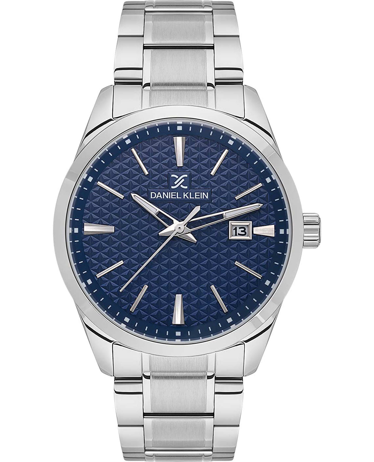 Мужские кварцевые часы Daniel Klein — это удобный и надёжный аксессуар для повседневного ношения. Корпус диаметром 42 мм выполнен из нержавеющей стали. Циферблат синего цвета имеет фактурное покрытие, оформлен штрихами и стрелками. Окошко даты расположено в положении 3 часов. Стрелки с люминесцентным покрытиемЛюминесцентное покрытиеПозволяет считывать показания времени в темноте. Производители наносят на стрелки, часовые индексы, безель или поверхность циферблата светонакопительный состав, дающий холодное свечение., обеспечивающим хорошую читаемость в темноте. Циферблат защищён минеральным стекломМинеральное стеклоМинеральное стекло представляет собой искусственно выращенный минерал кварца. Такое стекло отличается особой устойчивостью к повреждениям и царапинам. Уступает по некоторым качествам сапфировому стеклу.. Часы оснащены стальным браслетом на раскладной застёжкеРаскладная застёжкаТакой тип застёжки используется только на браслетах из металла. Она никогда не раскрывается полностью, происходит разделение на 2 и более частей. Раскладывающая застёжка снизит вероятность потери часов к минимуму.. Водонепроницаемость 50 м позволяет использовать часы в повседневных условиях. Идеальный выбор для тех, кто ценит турецкое качество и универсальный дизайн.