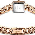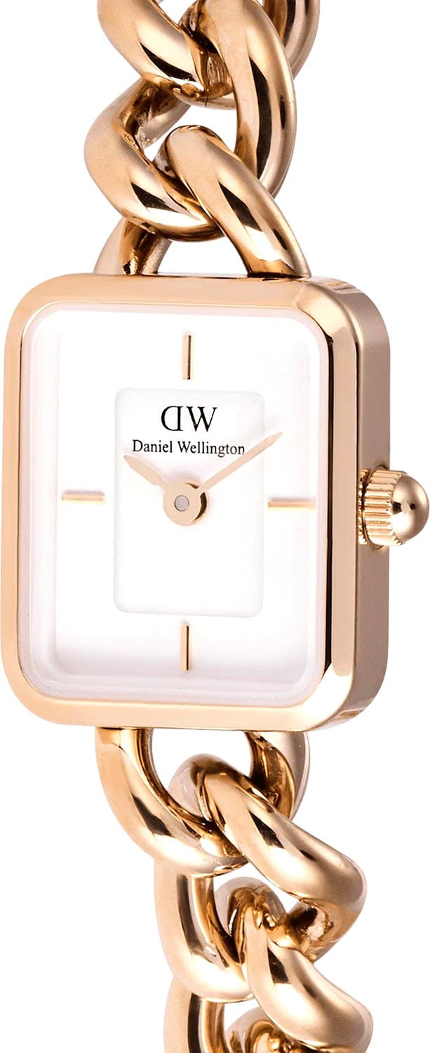 Daniel Wellington Jolie Chain DW00100835 — изящные женские часы в фирменном стиле бренда с акцентом на минимализм и украшение в виде массивного браслета-цепочки. Прямоугольный корпус аккуратного размера подчёркивает современный силуэт, а браслет с широкими звеньями создаёт эффект ювелирного аксессуара.Минеральное стеклоМинеральное стеклоМинеральное стекло представляет собой искусственно выращенный минерал кварца. Такое стекло отличается особой устойчивостью к повреждениям и царапинам. Уступает по некоторым качествам сапфировому стеклу. устойчивое к мелким механическим повреждениям. Циферблат оформлен лаконично: тонкие метки и стрелки обеспечивают лёгкость восприятия времени, оставляя пространство для чистой эстетики. Корпус и браслет покрыты PVD-покрытиемPVDУльтратонкое покрытие наносится в технике вакуумного напыления, сочетает в себе нитрид титана особой прочности со слоем золота или оксида хрома. Несёт в себе декоративную или защитную функцию., что гарантирует стойкость к царапинам и сохранение блеска. Модель работает на точном кварцевом механизме, не требующем ежедневного завода, а надёжная застёжка обеспечивает комфортное ношение. Daniel Wellington Jolie Chain — это часы и стильное украшение одновременно, идеально подходящее для акцента в повседневном и вечернем образе.
