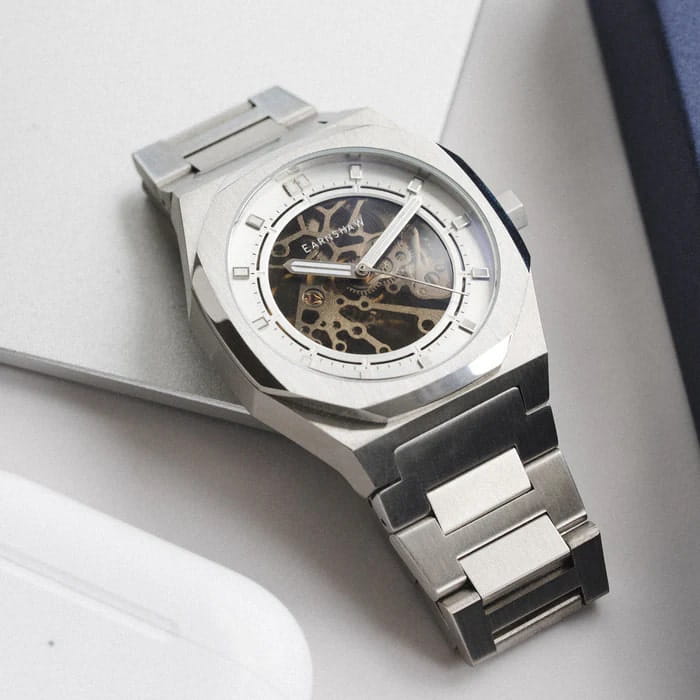 Мужские наручные часы с минеральным стекломМинеральное стеклоМинеральное стекло представляет собой искусственно выращенный минерал кварца. Такое стекло отличается особой устойчивостью к повреждениям и царапинам. Уступает по некоторым качествам сапфировому стеклу. Earnshaw Bessemer ES-8142-11, кварцевый механизм. Класс водозащиты: 50 метров, позволит защитить корпус от воды. Корпус часов изготовлен из нержавеющей стали. Центральные часовая и минутная стрелки, секундная стрелка вынесена на малый циферблат. Люминесцентная подсветкаЛюминесцентное покрытиеПозволяет считывать показания времени в темноте. Производители наносят на стрелки, часовые индексы, безель или поверхность циферблата светонакопительный состав, дающий холодное свечение. меток и стрелок. Диаметр корпуса составляет 42 мм, толщина 12 мм.