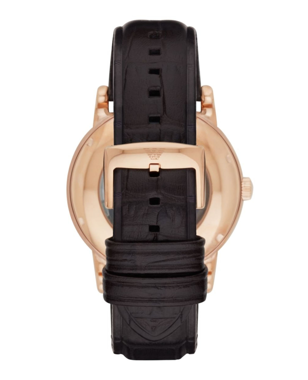Мужские механические часы с минеральным стекломМинеральное стеклоМинеральное стекло представляет собой искусственно выращенный минерал кварца. Такое стекло отличается особой устойчивостью к повреждениям и царапинам. Уступает по некоторым качествам сапфировому стеклу. Emporio Armani Dress AR1983. Корпус часов изготовлен из стали с PVD-покрытиемPVDУльтратонкое покрытие наносится в технике вакуумного напыления, сочетает в себе нитрид титана особой прочности со слоем золота или оксида хрома. Несёт в себе декоративную или защитную функцию.. Стрелки с люминесцентным покрытиемЛюминесцентное покрытиеПозволяет считывать показания времени в темноте. Производители наносят на стрелки, часовые индексы, безель или поверхность циферблата светонакопительный состав, дающий холодное свечение.. Класс водозащиты: 30 метров, позволит защитить корпус от случайных брызг или капель дождя. Кожаный ремешок на стандартной застежке.