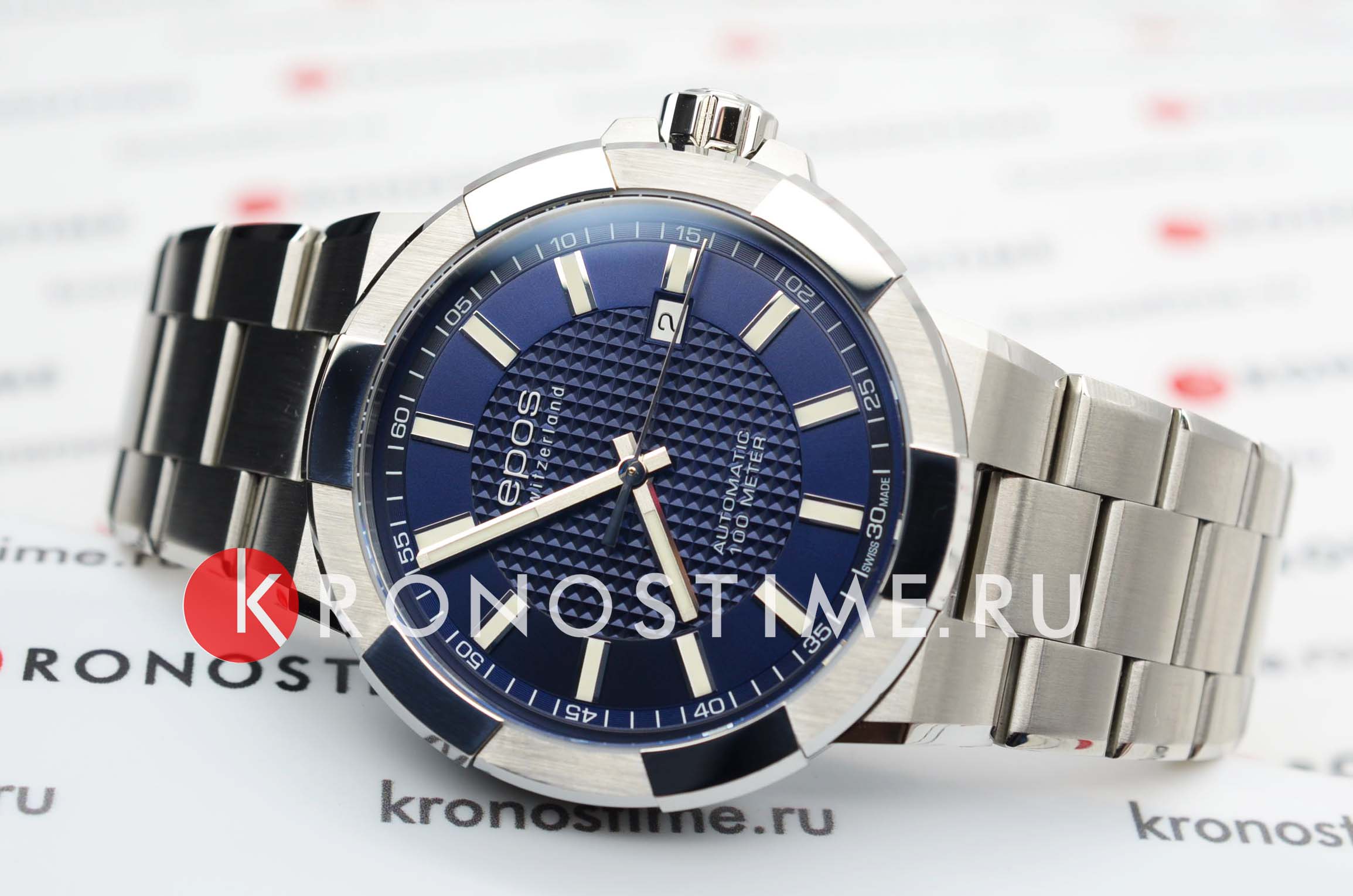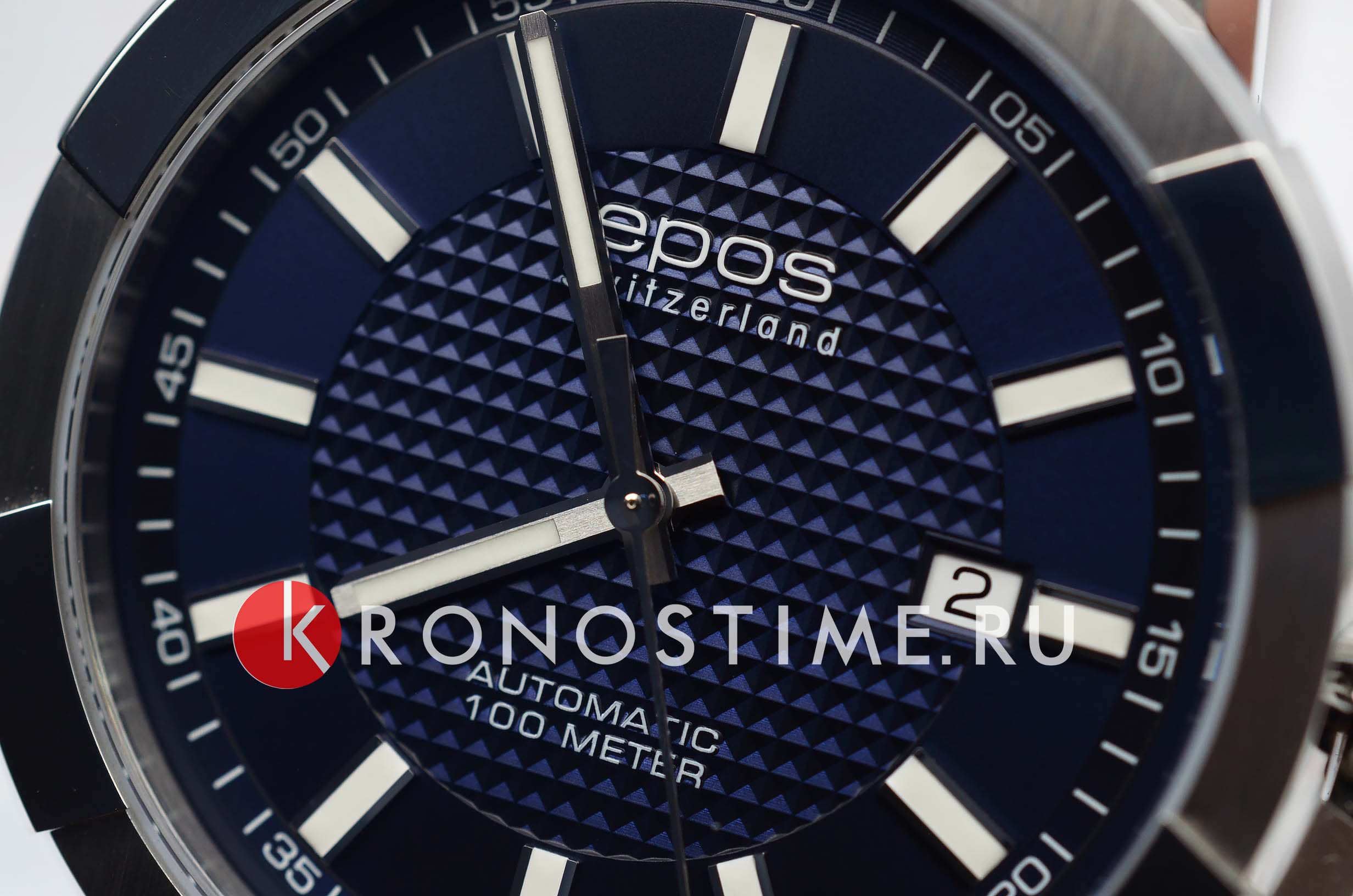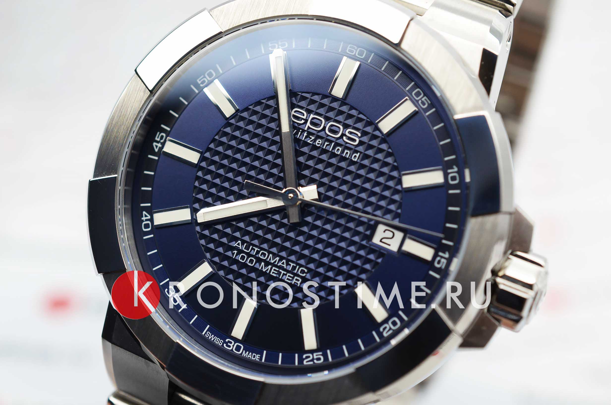 Мужские швейцарские механические часы Epos Sportive 3443.132.20.16.30, механический механизм (автоматический калибр) с высокой точностью. Сапфировое стеклоСапфировое стеклоПрочный и надёжный материал из кристалла сапфира синтетического происхождения, характеризующийся особой твёрдостью и устойчивостью к царапинам и повреждениям. устойчивое к появлению царапин, обладающее высокой прозрачностью. Класс водозащиты: 100 метров, позволит плавать, нырять и заниматься другими водными видами спорта. Корпус часов изготовлен из стали, серебристого цвета. Раскладная застёжкаРаскладная застёжкаТакой тип застёжки используется только на браслетах из металла. Она никогда не раскрывается полностью, происходит разделение на 2 и более частей. Раскладывающая застёжка снизит вероятность потери часов к минимуму.. Декорированный механизм, ротор украшен узором Женевские волны. Люминесцентная подсветкаЛюминесцентное покрытиеПозволяет считывать показания времени в темноте. Производители наносят на стрелки, часовые индексы, безель или поверхность циферблата светонакопительный состав, дающий холодное свечение. стрелок и меток
