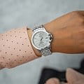 Женские наручные часы на браслете Fossil Carlie ES4744, кварцевый механизм с высокой точностью. Класс водозащиты: 100 метров, позволит плавать, нырять и заниматься другими водными видами спорта. Корпус часов изготовлен из стали, серебристого цвета.